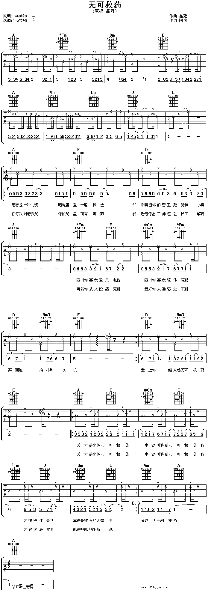 公众号:绵羊乐谱 无可救药—品冠免费弹唱吉他谱_六线谱:未知 点击: 1000 图片可能经过缩放,手机长按或点开后长按保存,电脑鼠标右键保存. (网络) 公众号:绵羊乐谱 | 官方QQ群:978773290 不吃独食,学会分享!本文链接:http://www.shaomingyang.com/btb/34371.html 转载请标明出处,尊重原创(๑╹◡╹)ノ。如信息有误或版权疑问,请通过网站底部联系我们会第一时间处理,感谢理解支持(◕ᴗ◕✿)!