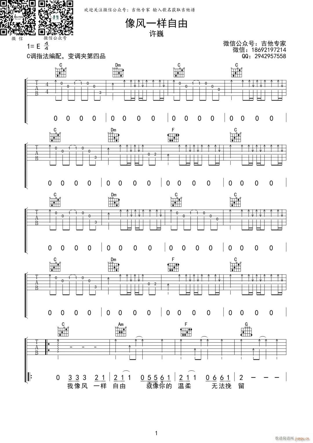 公众号:绵羊乐谱 像风一样自由 ( C调原版编配) 免费弹唱吉他谱_六线谱/词曲:许巍 点击: (吉他专家) 公众号:绵羊乐谱 | 官方QQ群:978773290 不吃独食,学会分享!本文链接:http://www.shaomingyang.com/btb/34435.html 转载请标明出处,尊重原创(๑╹◡╹)ノ。如信息有误或版权疑问,请通过网站底部联系我们会第一时间处理,感谢理解支持(◕ᴗ◕✿)!