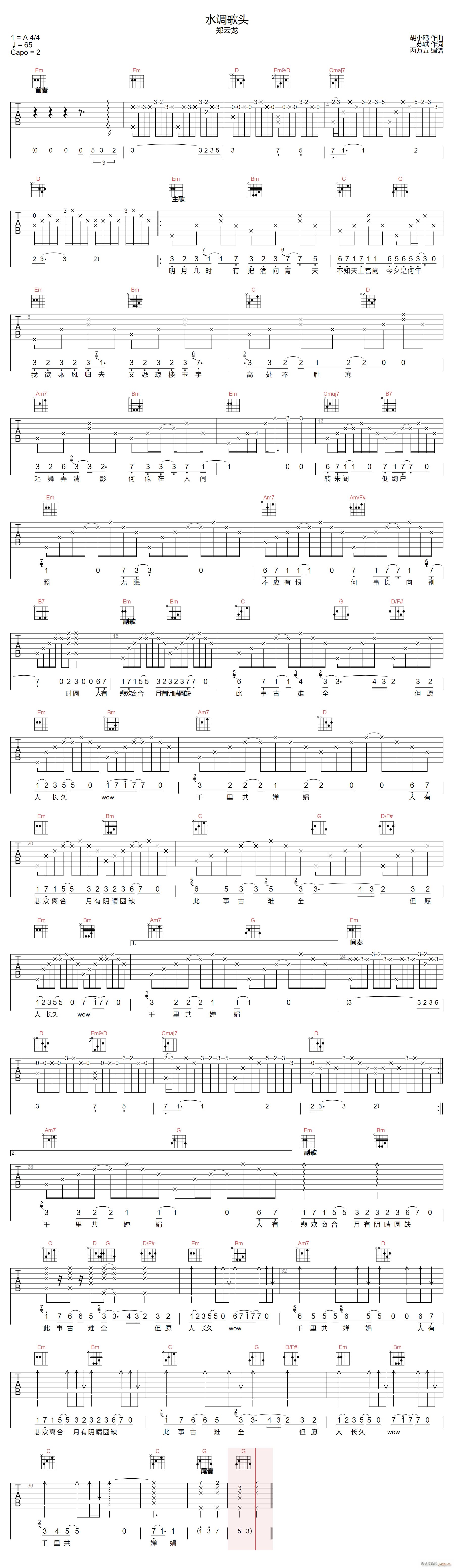 公众号:绵羊乐谱 水调歌头 ( G调指法原版编配) 免费弹唱吉他谱_六线谱/词曲:郑云龙 点击: (两万五) 公众号:绵羊乐谱 | 官方QQ群:978773290 不吃独食,学会分享!本文链接:http://www.shaomingyang.com/btb/34483.html 转载请标明出处,尊重原创(๑╹◡╹)ノ。如信息有误或版权疑问,请通过网站底部联系我们会第一时间处理,感谢理解支持(◕ᴗ◕✿)!