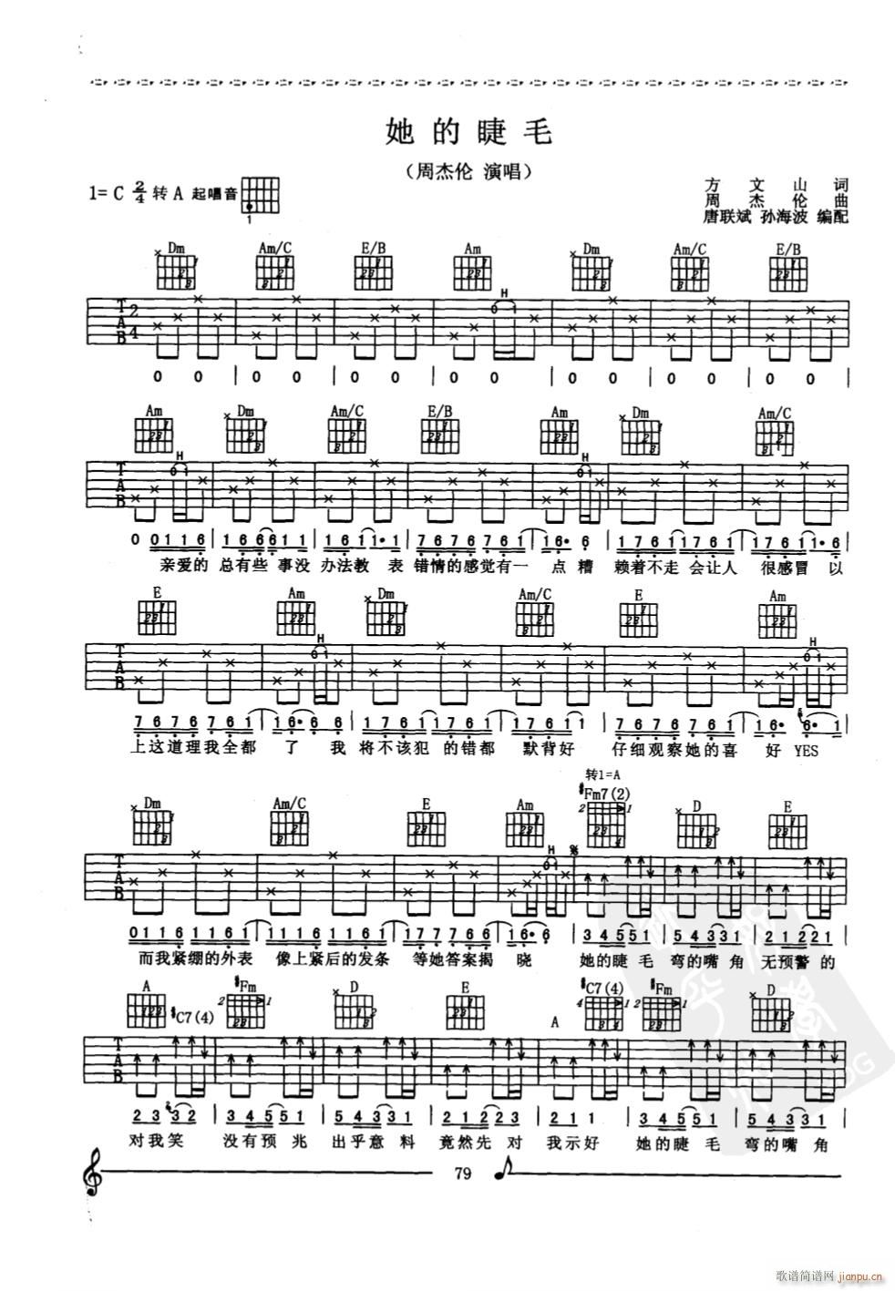 公众号:绵羊乐谱 她的睫毛 ( C调原版编配) 免费弹唱吉他谱_六线谱/词曲:周杰伦 点击: (网络) 公众号:绵羊乐谱 | 官方QQ群:978773290 不吃独食,学会分享!本文链接:http://www.shaomingyang.com/btb/34565.html 转载请标明出处,尊重原创(๑╹◡╹)ノ。如信息有误或版权疑问,请通过网站底部联系我们会第一时间处理,感谢理解支持(◕ᴗ◕✿)!