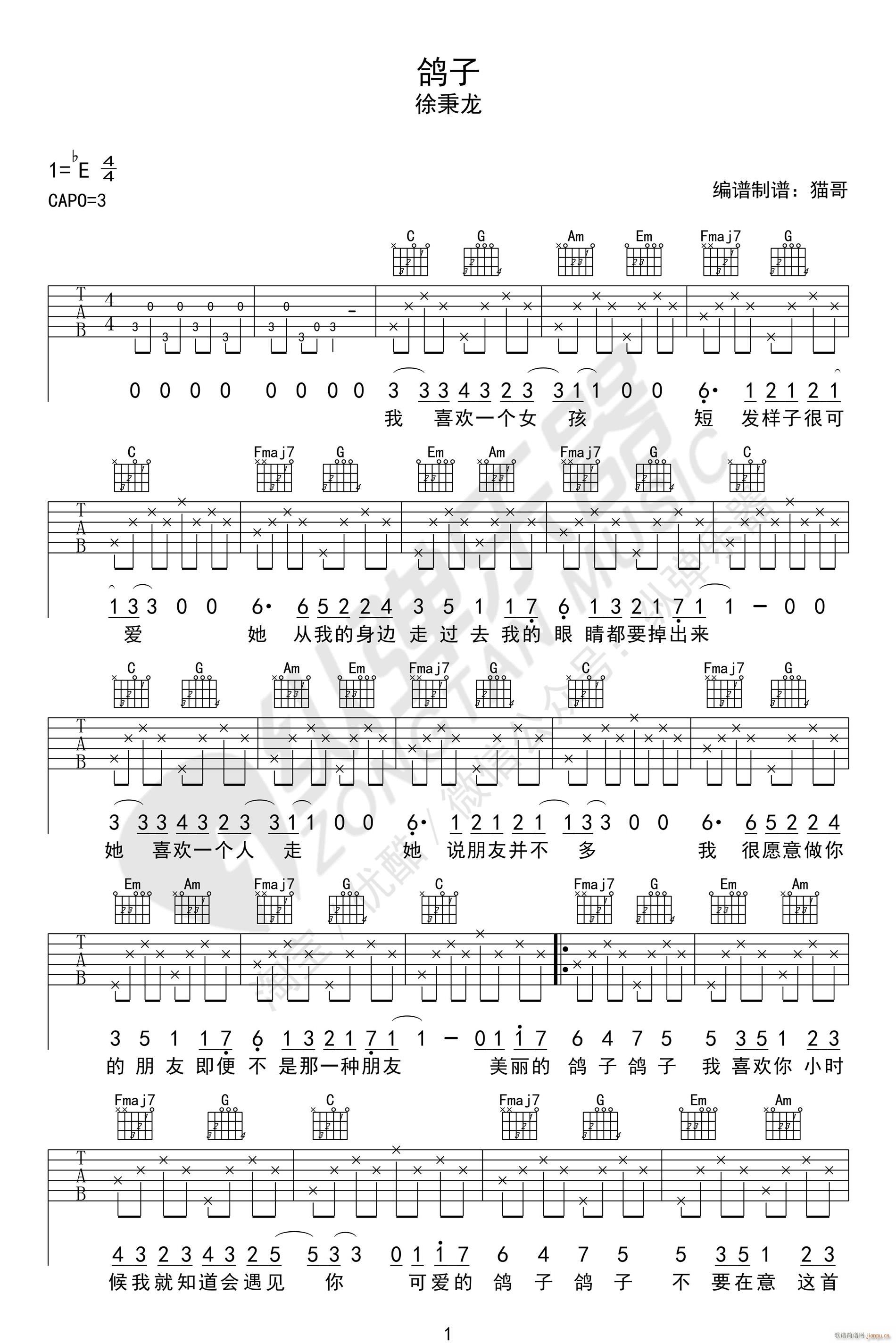 公众号:绵羊乐谱 鸽子 ( C调指法原版编配) 免费弹唱吉他谱_六线谱/词曲:徐秉龙 点击: (纵弹乐器) 公众号:绵羊乐谱 | 官方QQ群:978773290 不吃独食,学会分享!本文链接:http://www.shaomingyang.com/btb/34579.html 转载请标明出处,尊重原创(๑╹◡╹)ノ。如信息有误或版权疑问,请通过网站底部联系我们会第一时间处理,感谢理解支持(◕ᴗ◕✿)!