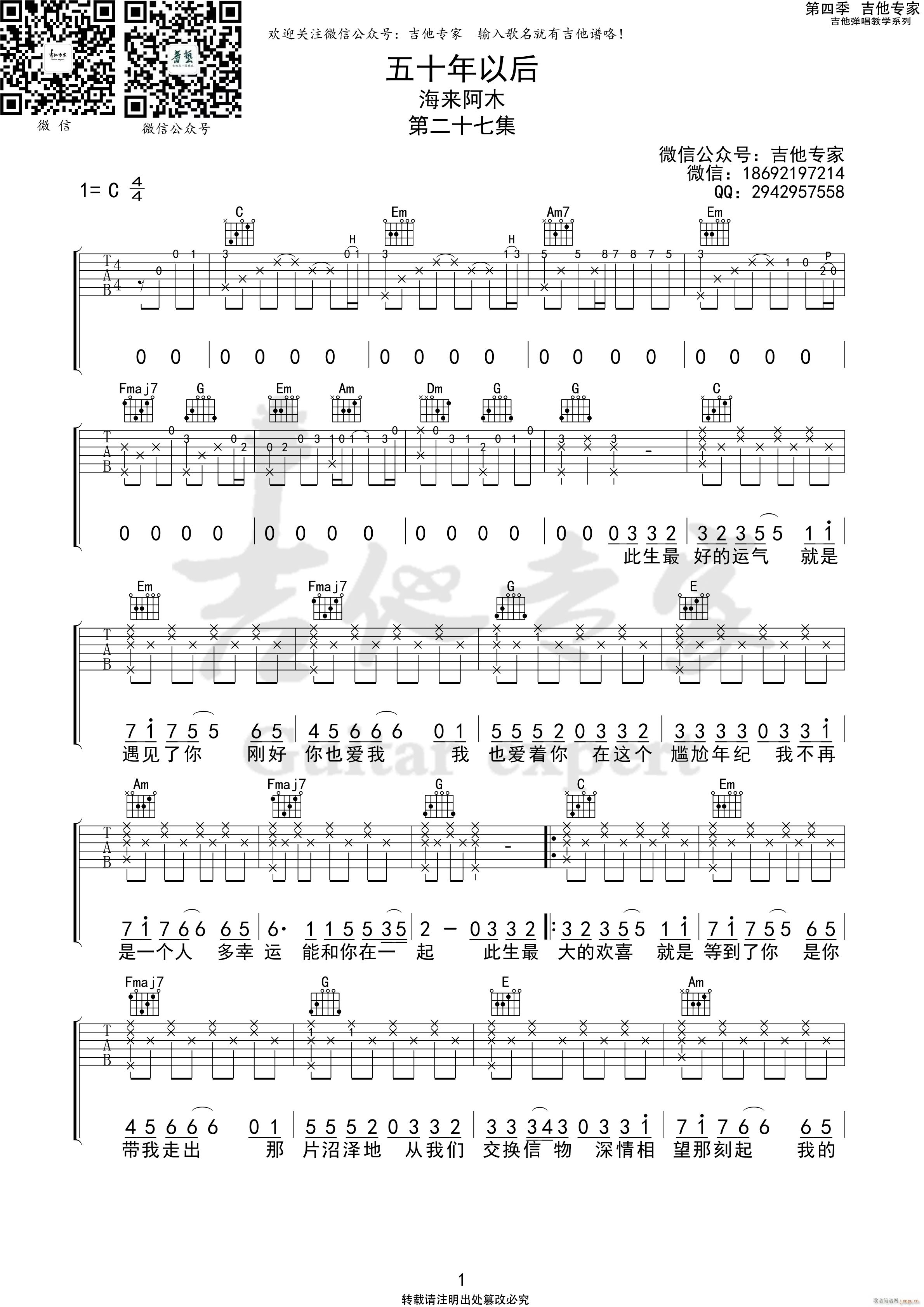 公众号:绵羊乐谱 五十年以后 免费弹唱吉他谱_六线谱/词曲: 点击: (网络) 公众号:绵羊乐谱 | 官方QQ群:978773290 不吃独食,学会分享!本文链接:http://www.shaomingyang.com/btb/34596.html 转载请标明出处,尊重原创(๑╹◡╹)ノ。如信息有误或版权疑问,请通过网站底部联系我们会第一时间处理,感谢理解支持(◕ᴗ◕✿)!