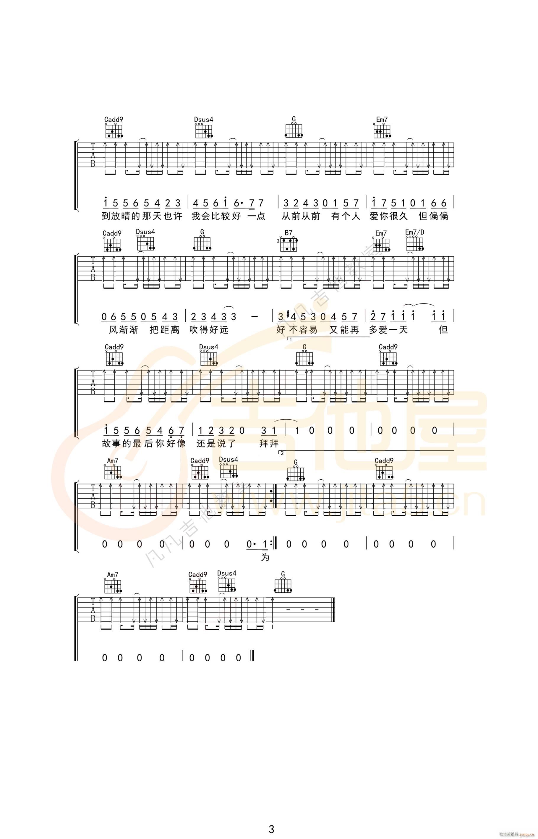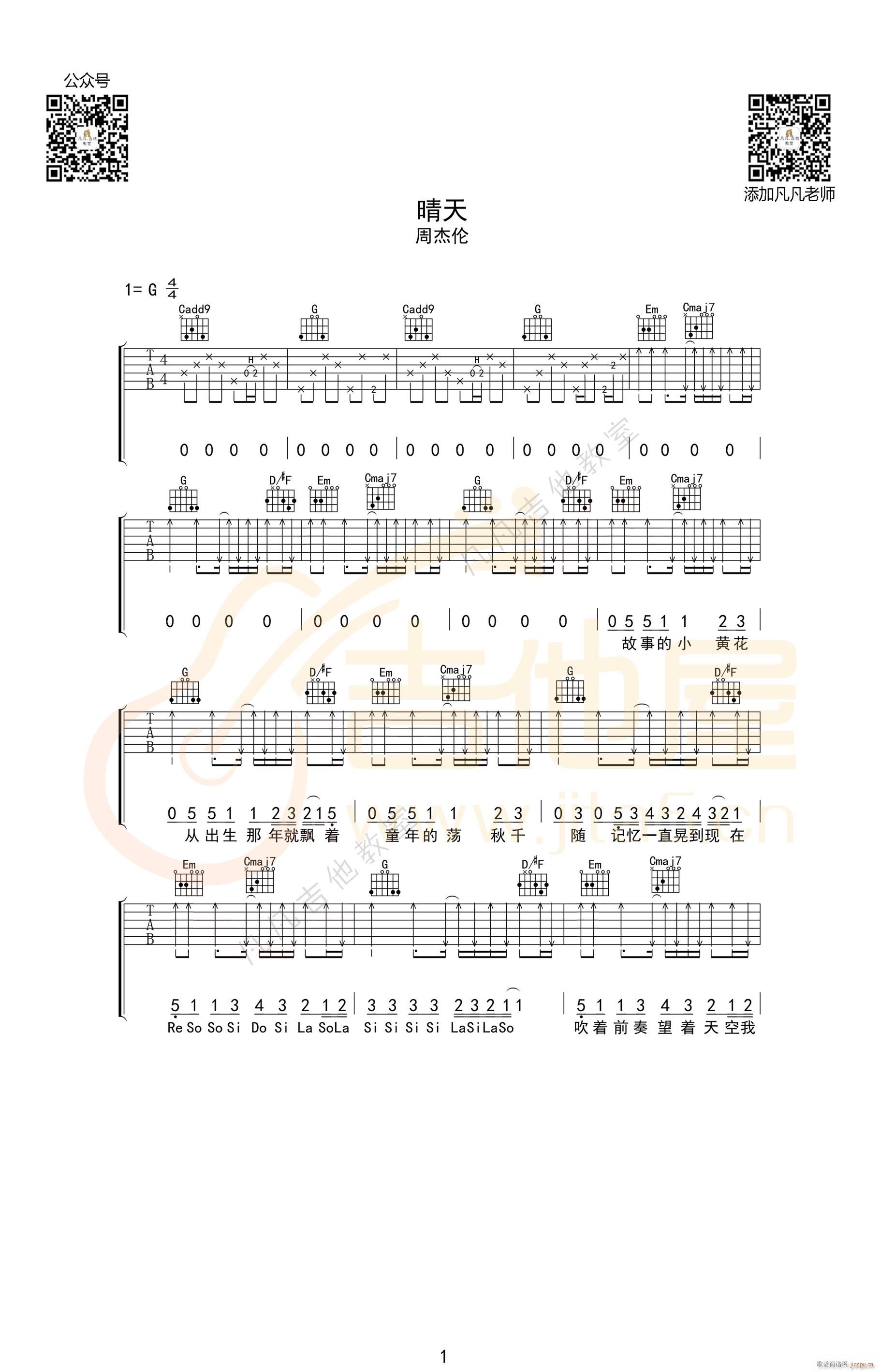 公众号:绵羊乐谱 晴天 ( G调指法原版编配) 免费弹唱吉他谱_六线谱/词曲:周杰伦 点击: (凡凡吉他教室) 公众号:绵羊乐谱 | 官方QQ群:978773290 不吃独食,学会分享!本文链接:http://www.shaomingyang.com/btb/34605.html 转载请标明出处,尊重原创(๑╹◡╹)ノ。如信息有误或版权疑问,请通过网站底部联系我们会第一时间处理,感谢理解支持(◕ᴗ◕✿)!