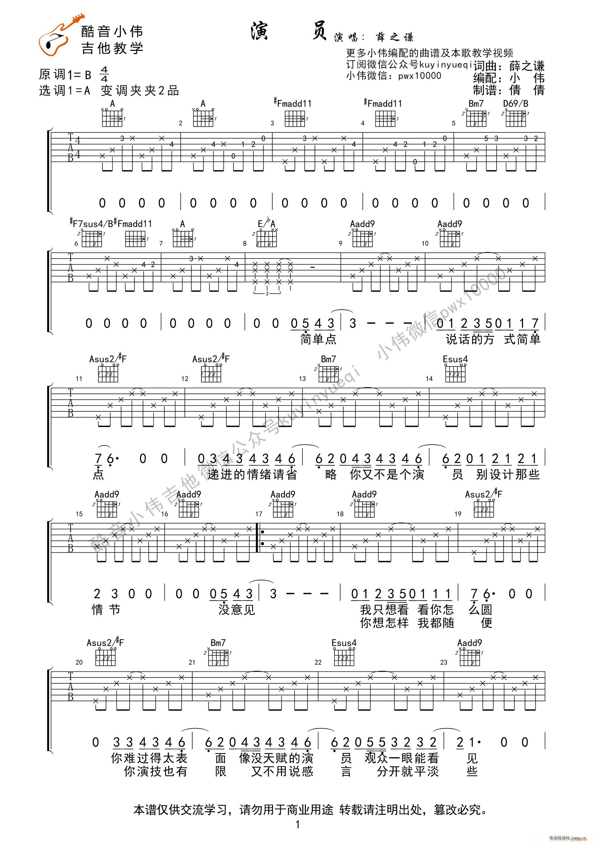 公众号:绵羊乐谱 演员A调免费弹唱吉他谱_六线谱/词曲:薛之谦 点击: 1000 图片可能经过缩放,手机长按或点开后长按保存,电脑鼠标右键保存. (网络) 公众号:绵羊乐谱 | 官方QQ群:978773290 不吃独食,学会分享!本文链接:http://www.shaomingyang.com/btb/34606.html 转载请标明出处,尊重原创(๑╹◡╹)ノ。如信息有误或版权疑问,请通过网站底部联系我们会第一时间处理,感谢理解支持(◕ᴗ◕✿)!