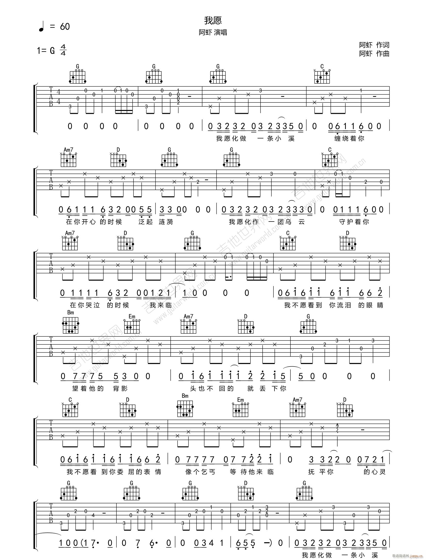 公众号:绵羊乐谱 我愿 ( G调指法原版编配) 免费弹唱吉他谱_六线谱/词曲:阿虾 点击: (网络) 公众号:绵羊乐谱 | 官方QQ群:978773290 不吃独食,学会分享!本文链接:http://www.shaomingyang.com/btb/34655.html 转载请标明出处,尊重原创(๑╹◡╹)ノ。如信息有误或版权疑问,请通过网站底部联系我们会第一时间处理,感谢理解支持(◕ᴗ◕✿)!