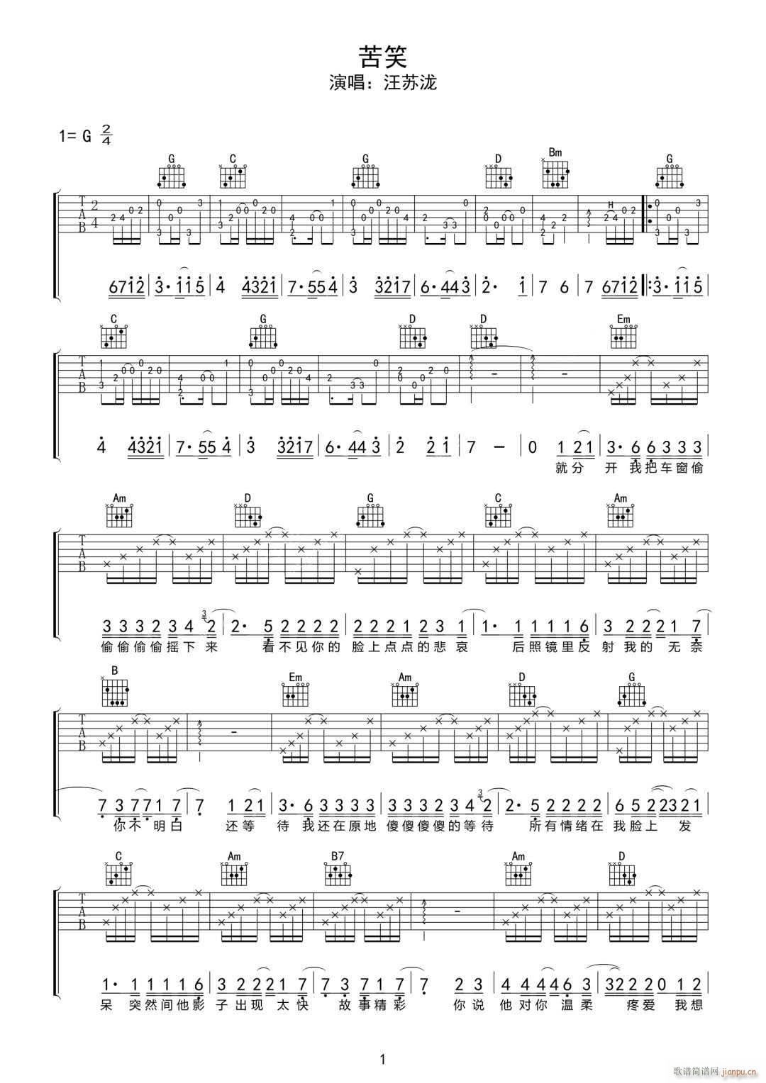 公众号:绵羊乐谱 苦笑 ( G调指法原版编配) 免费弹唱吉他谱_六线谱/词曲:汪苏泷 点击: (网络) 公众号:绵羊乐谱 | 官方QQ群:978773290 不吃独食,学会分享!本文链接:http://www.shaomingyang.com/btb/34658.html 转载请标明出处,尊重原创(๑╹◡╹)ノ。如信息有误或版权疑问,请通过网站底部联系我们会第一时间处理,感谢理解支持(◕ᴗ◕✿)!