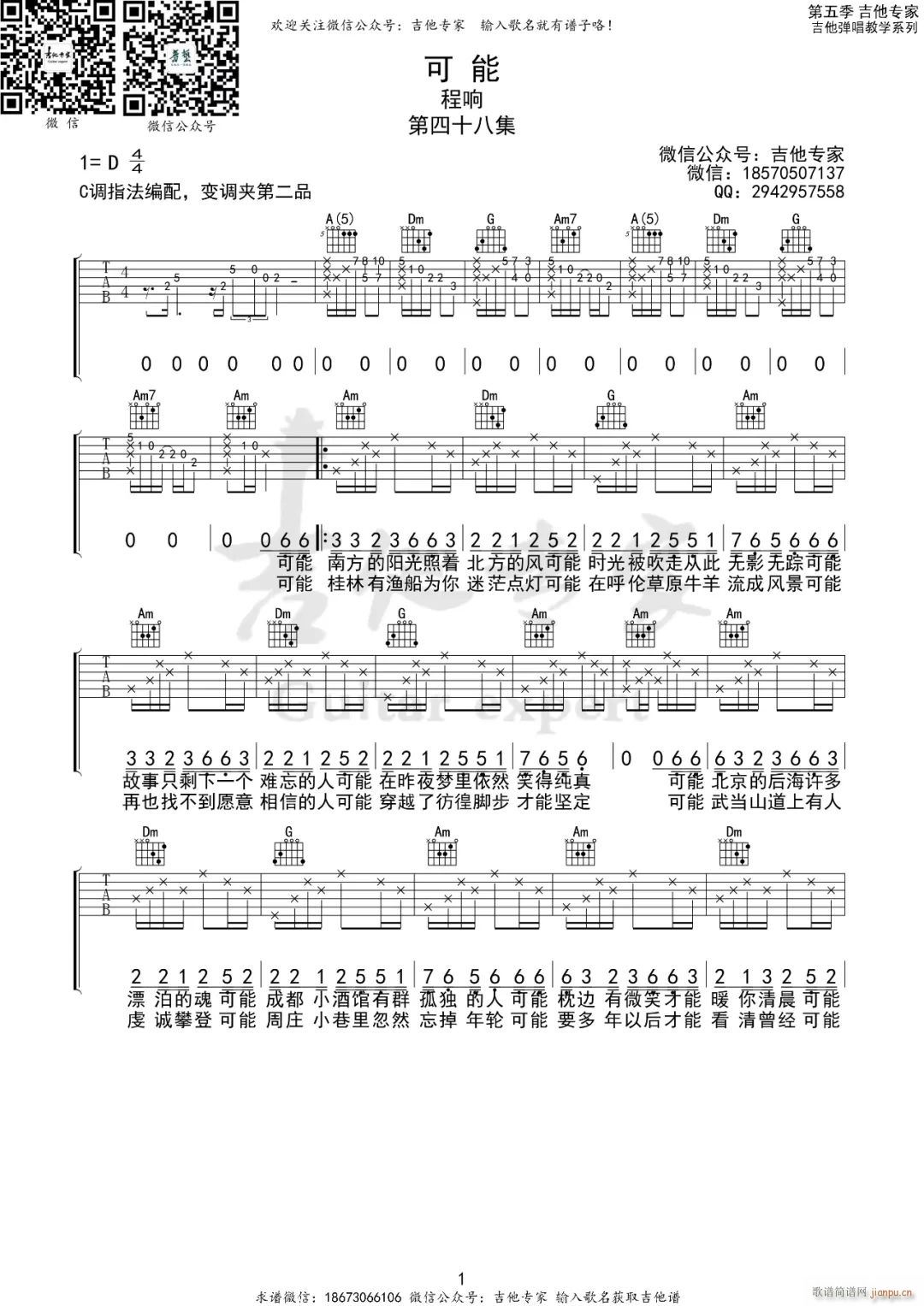 公众号:绵羊乐谱 可能 ( C调原版编配) 免费弹唱吉他谱_六线谱/词曲:程响 点击: (吉他专家) 公众号:绵羊乐谱 | 官方QQ群:978773290 不吃独食,学会分享!本文链接:http://www.shaomingyang.com/btb/34660.html 转载请标明出处,尊重原创(๑╹◡╹)ノ。如信息有误或版权疑问,请通过网站底部联系我们会第一时间处理,感谢理解支持(◕ᴗ◕✿)!