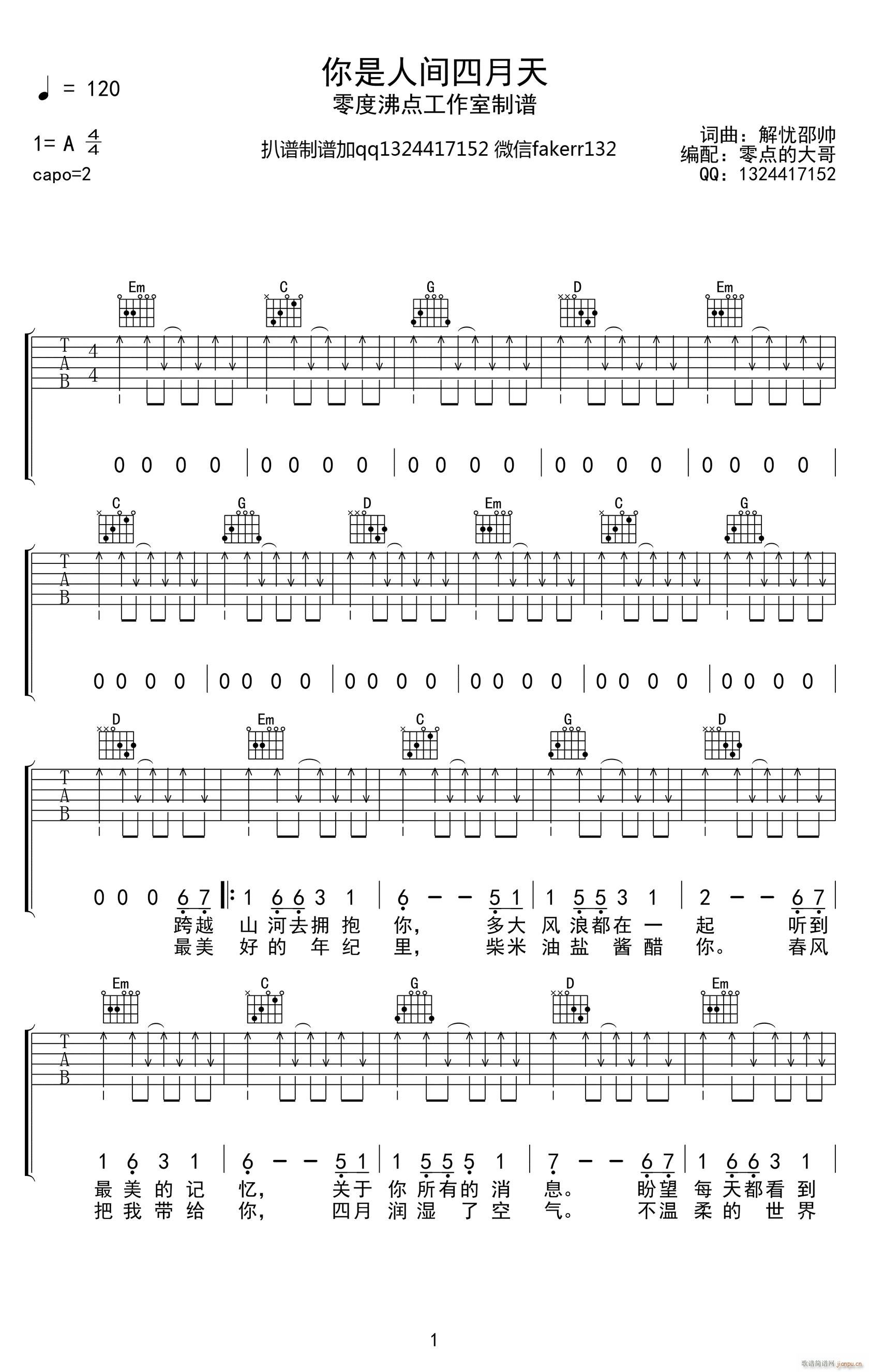 公众号:绵羊乐谱 你是人间四月天 ( G调扫弦版) 免费弹唱吉他谱_六线谱/词曲:解忧邵帅 点击: (零度沸点工作室) 公众号:绵羊乐谱 | 官方QQ群:978773290 不吃独食,学会分享!本文链接:http://www.shaomingyang.com/btb/34666.html 转载请标明出处,尊重原创(๑╹◡╹)ノ。如信息有误或版权疑问,请通过网站底部联系我们会第一时间处理,感谢理解支持(◕ᴗ◕✿)!
