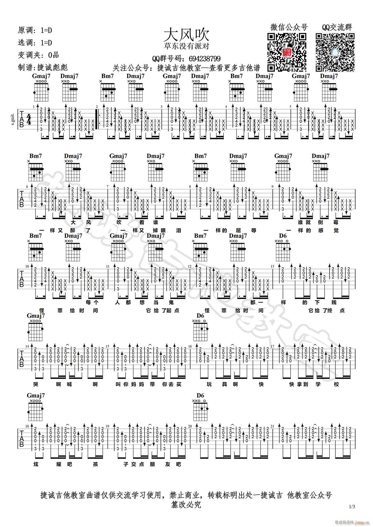 公众号:绵羊乐谱 大风吹 ( D调原版) 免费弹唱吉他谱_六线谱/词曲:草东没有派对 点击: (捷诚吉他教室) 公众号:绵羊乐谱 | 官方QQ群:978773290 不吃独食,学会分享!本文链接:http://www.shaomingyang.com/btb/34667.html 转载请标明出处,尊重原创(๑╹◡╹)ノ。如信息有误或版权疑问,请通过网站底部联系我们会第一时间处理,感谢理解支持(◕ᴗ◕✿)!