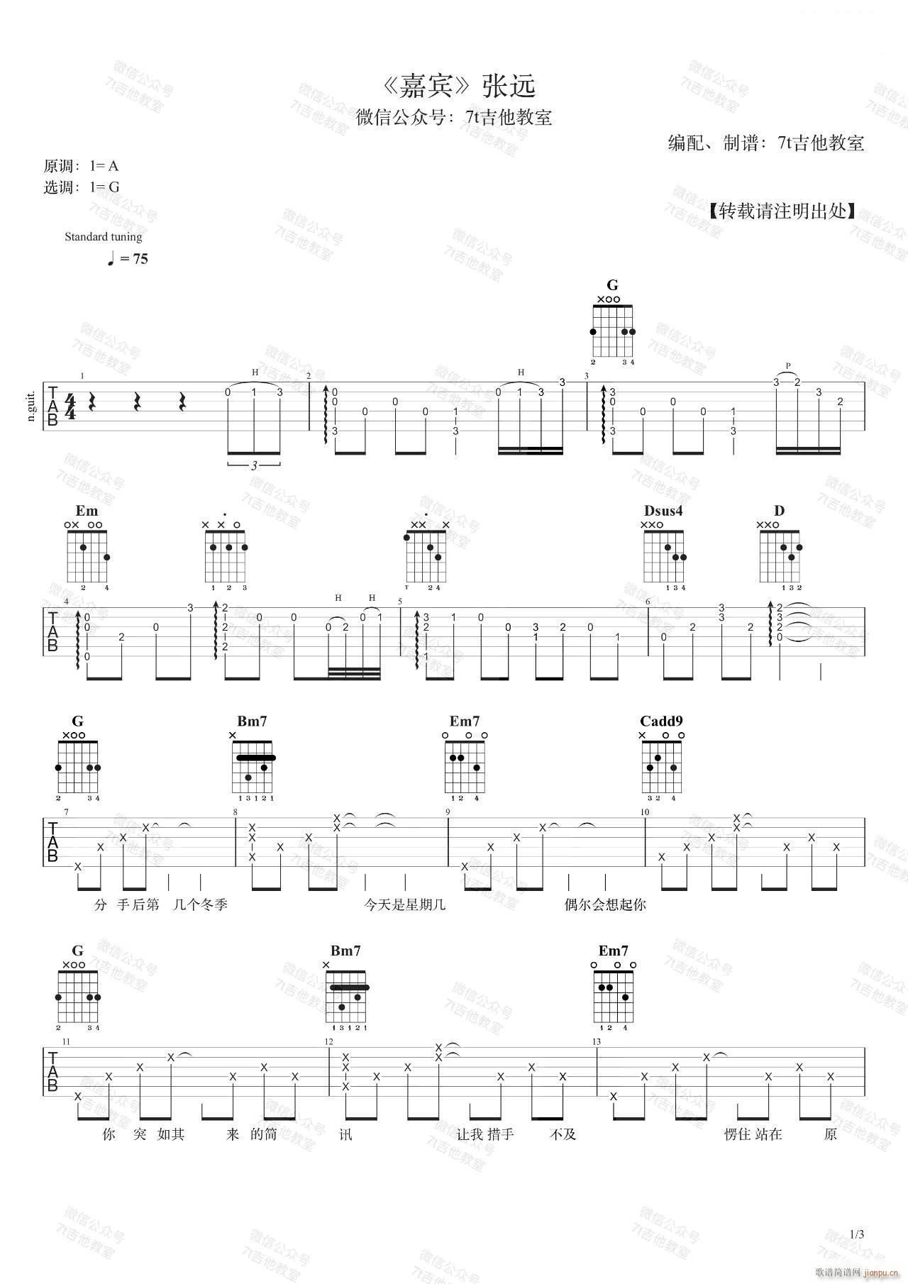 公众号:绵羊乐谱 嘉宾 ( G调原版编配) 免费弹唱吉他谱_六线谱/词曲:张远 点击: (网络) 公众号:绵羊乐谱 | 官方QQ群:978773290 不吃独食,学会分享!本文链接:http://www.shaomingyang.com/btb/34711.html 转载请标明出处,尊重原创(๑╹◡╹)ノ。如信息有误或版权疑问,请通过网站底部联系我们会第一时间处理,感谢理解支持(◕ᴗ◕✿)!
