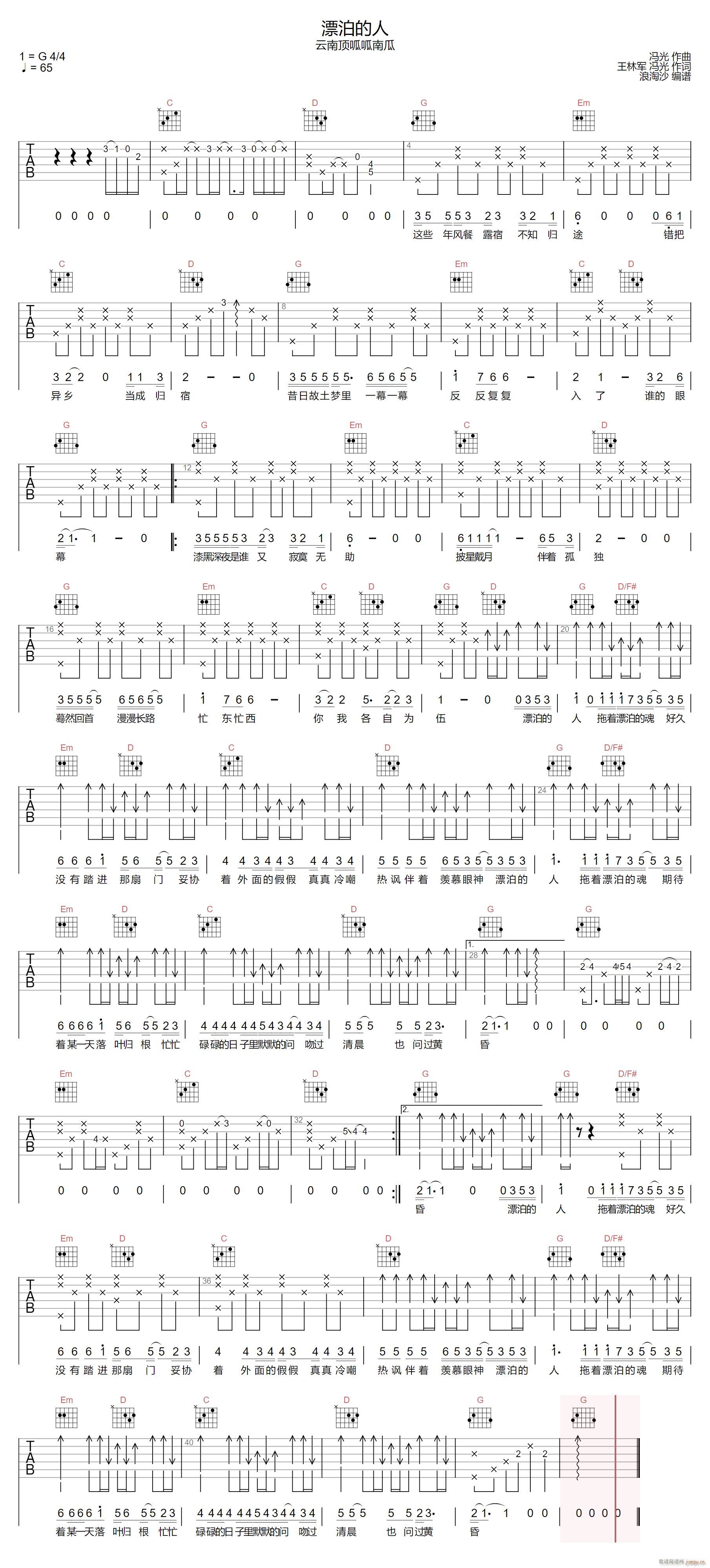 公众号:绵羊乐谱 漂泊的人 ( G调原版) 免费弹唱吉他谱_六线谱/词曲:云南顶呱呱南瓜 点击: (浪淘沙) 公众号:绵羊乐谱 | 官方QQ群:978773290 不吃独食,学会分享!本文链接:http://www.shaomingyang.com/btb/34725.html 转载请标明出处,尊重原创(๑╹◡╹)ノ。如信息有误或版权疑问,请通过网站底部联系我们会第一时间处理,感谢理解支持(◕ᴗ◕✿)!
