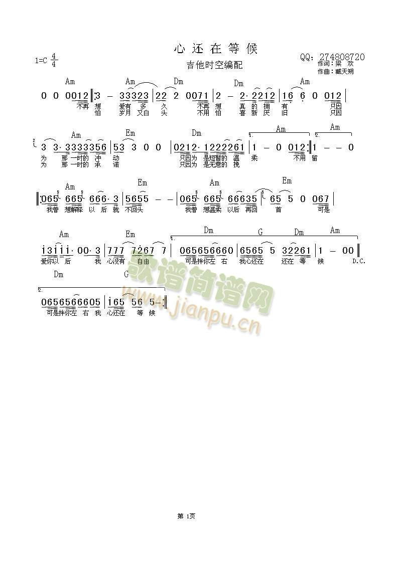 公众号:绵羊乐谱 心还在等候免费弹唱吉他谱_六线谱:臧天朔 点击: 1000 图片可能经过缩放,手机长按或点开后长按保存,电脑鼠标右键保存. (吉他时空传谱) 公众号:绵羊乐谱 | 官方QQ群:978773290 不吃独食,学会分享!本文链接:http://www.shaomingyang.com/btb/34736.html 转载请标明出处,尊重原创(๑╹◡╹)ノ。如信息有误或版权疑问,请通过网站底部联系我们会第一时间处理,感谢理解支持(◕ᴗ◕✿)!