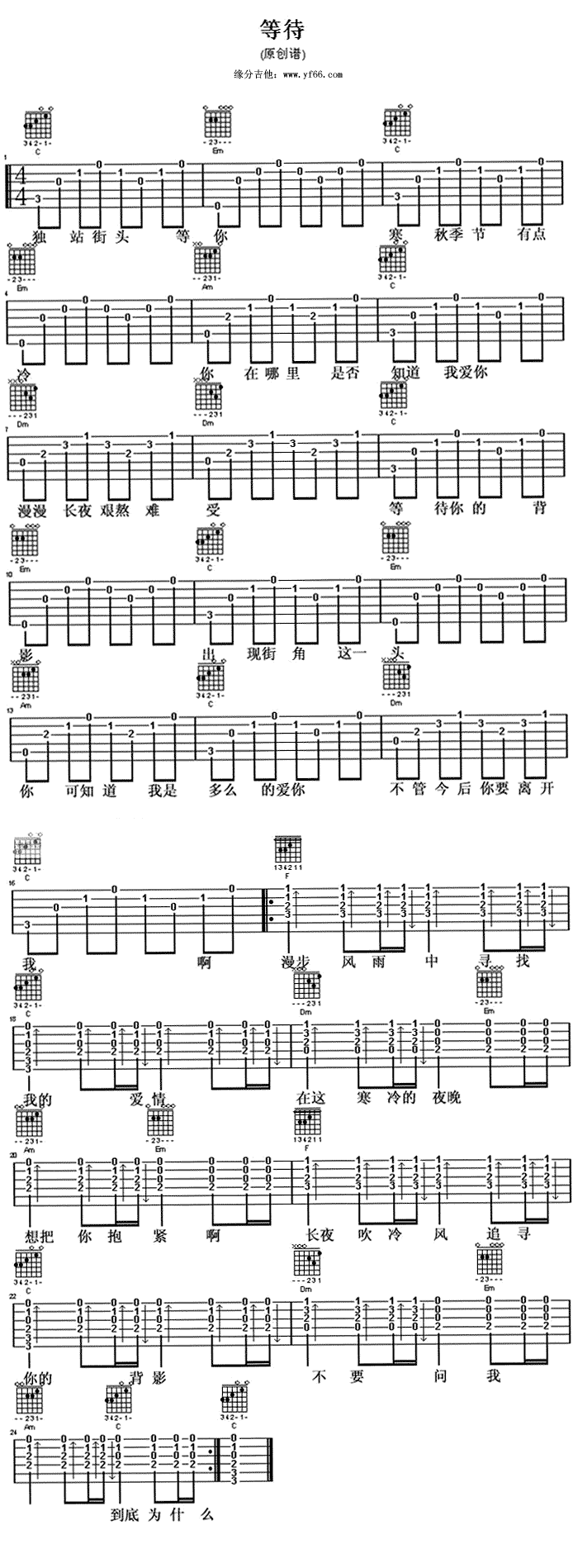 公众号:绵羊乐谱 等待免费弹唱吉他谱_六线谱:网友原创 点击: 1000 图片可能经过缩放,手机长按或点开后长按保存,电脑鼠标右键保存. (网络) 公众号:绵羊乐谱 | 官方QQ群:978773290 不吃独食,学会分享!本文链接:http://www.shaomingyang.com/btb/34743.html 转载请标明出处,尊重原创(๑╹◡╹)ノ。如信息有误或版权疑问,请通过网站底部联系我们会第一时间处理,感谢理解支持(◕ᴗ◕✿)!