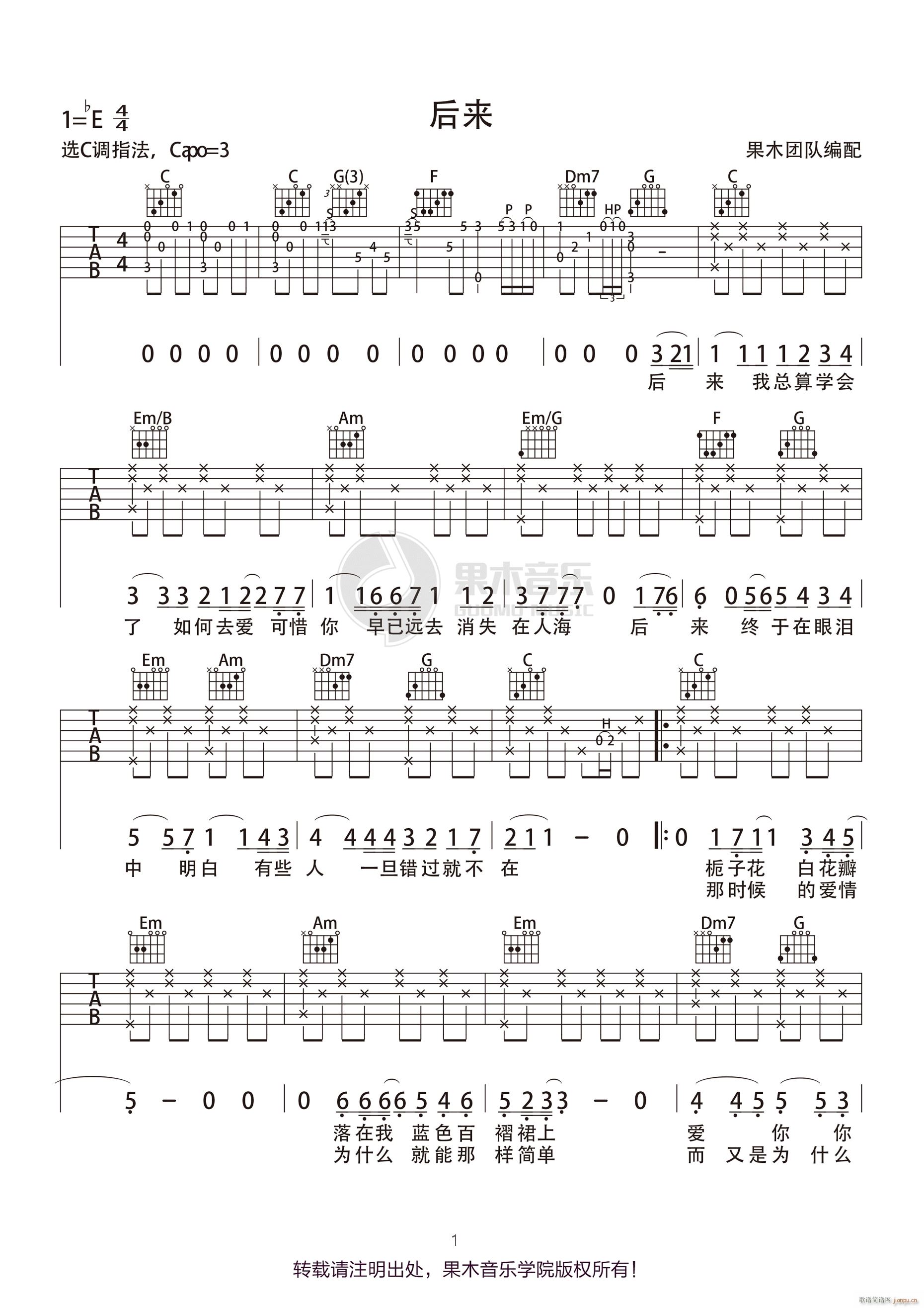 公众号:绵羊乐谱 后来 ( C调指法简单版) 免费弹唱吉他谱_六线谱/词曲:刘若英 点击: (果木) 公众号:绵羊乐谱 | 官方QQ群:978773290 不吃独食,学会分享!本文链接:http://www.shaomingyang.com/btb/34791.html 转载请标明出处,尊重原创(๑╹◡╹)ノ。如信息有误或版权疑问,请通过网站底部联系我们会第一时间处理,感谢理解支持(◕ᴗ◕✿)!