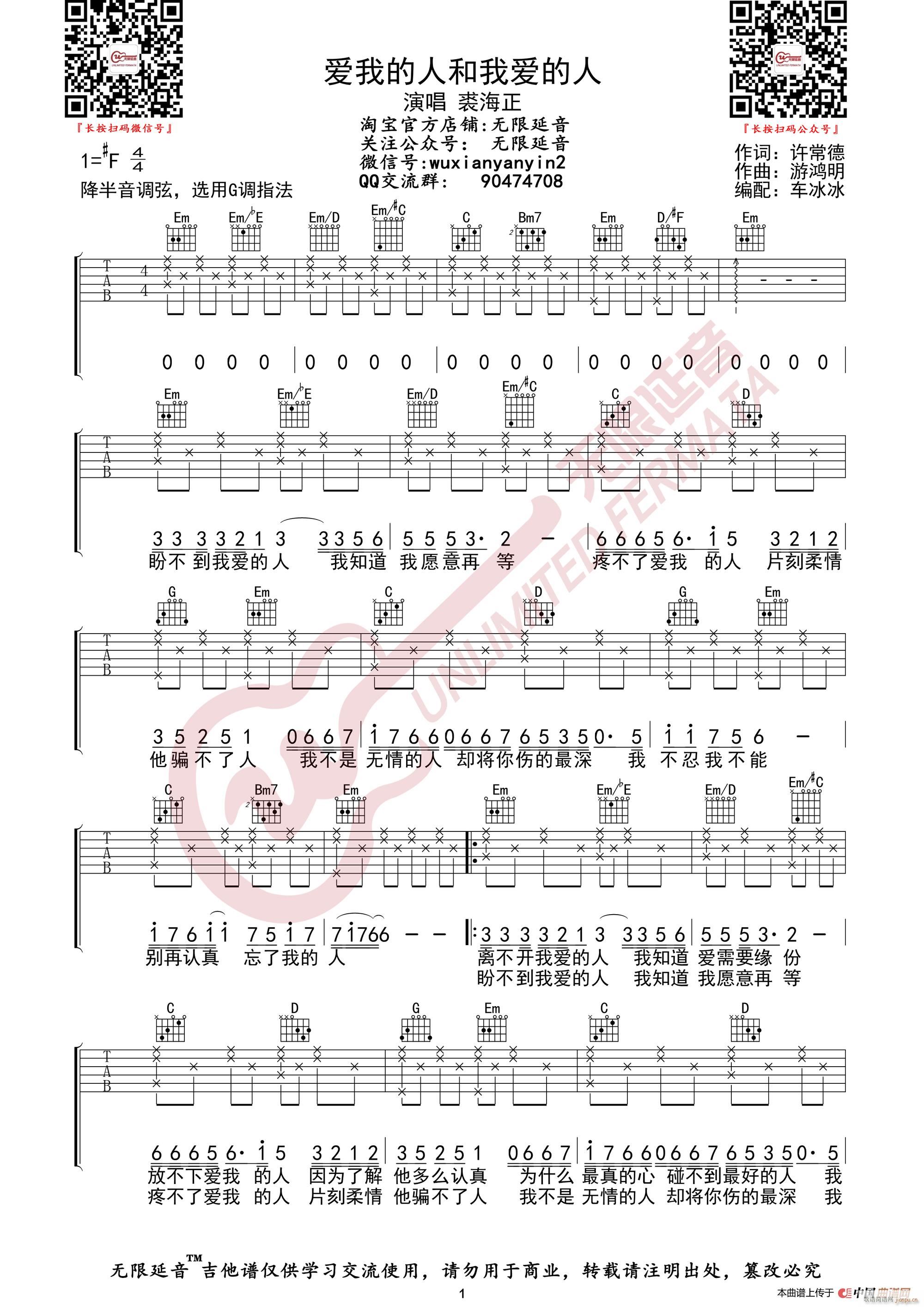 公众号:绵羊乐谱 裘海正 爱我的人和我爱的人 (无限延音编配) 免费弹唱吉他谱_六线谱/词曲: 点击: (网络) 公众号:绵羊乐谱 | 官方QQ群:978773290 不吃独食,学会分享!本文链接:http://www.shaomingyang.com/btb/34821.html 转载请标明出处,尊重原创(๑╹◡╹)ノ。如信息有误或版权疑问,请通过网站底部联系我们会第一时间处理,感谢理解支持(◕ᴗ◕✿)!