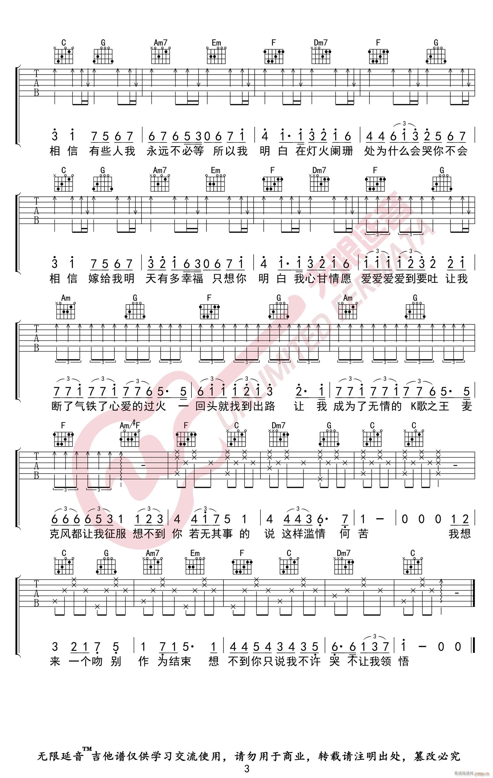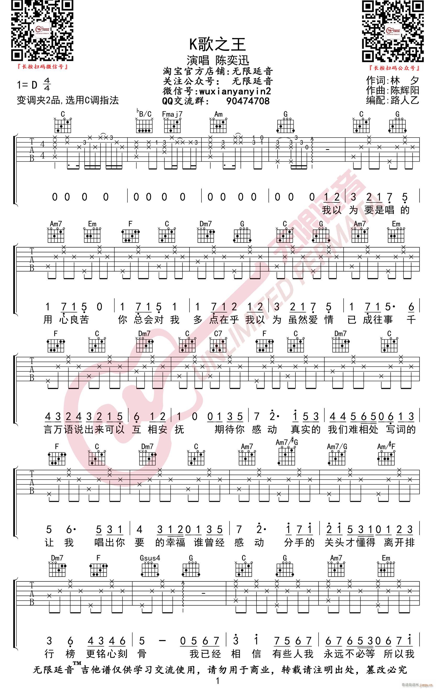 公众号:绵羊乐谱 K歌之王 ( C调原版编配) 免费弹唱吉他谱_六线谱/词曲:陈奕迅 点击: (无限延音) 公众号:绵羊乐谱 | 官方QQ群:978773290 不吃独食,学会分享!本文链接:http://www.shaomingyang.com/btb/34873.html 转载请标明出处,尊重原创(๑╹◡╹)ノ。如信息有误或版权疑问,请通过网站底部联系我们会第一时间处理,感谢理解支持(◕ᴗ◕✿)!