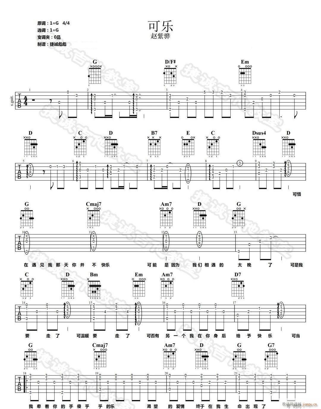 公众号:绵羊乐谱 可乐 ( G调指法原版编配) 免费弹唱吉他谱_六线谱/词曲:赵紫骅 点击: (捷诚吉他教室) 公众号:绵羊乐谱 | 官方QQ群:978773290 不吃独食,学会分享!本文链接:http://www.shaomingyang.com/btb/34896.html 转载请标明出处,尊重原创(๑╹◡╹)ノ。如信息有误或版权疑问,请通过网站底部联系我们会第一时间处理,感谢理解支持(◕ᴗ◕✿)!