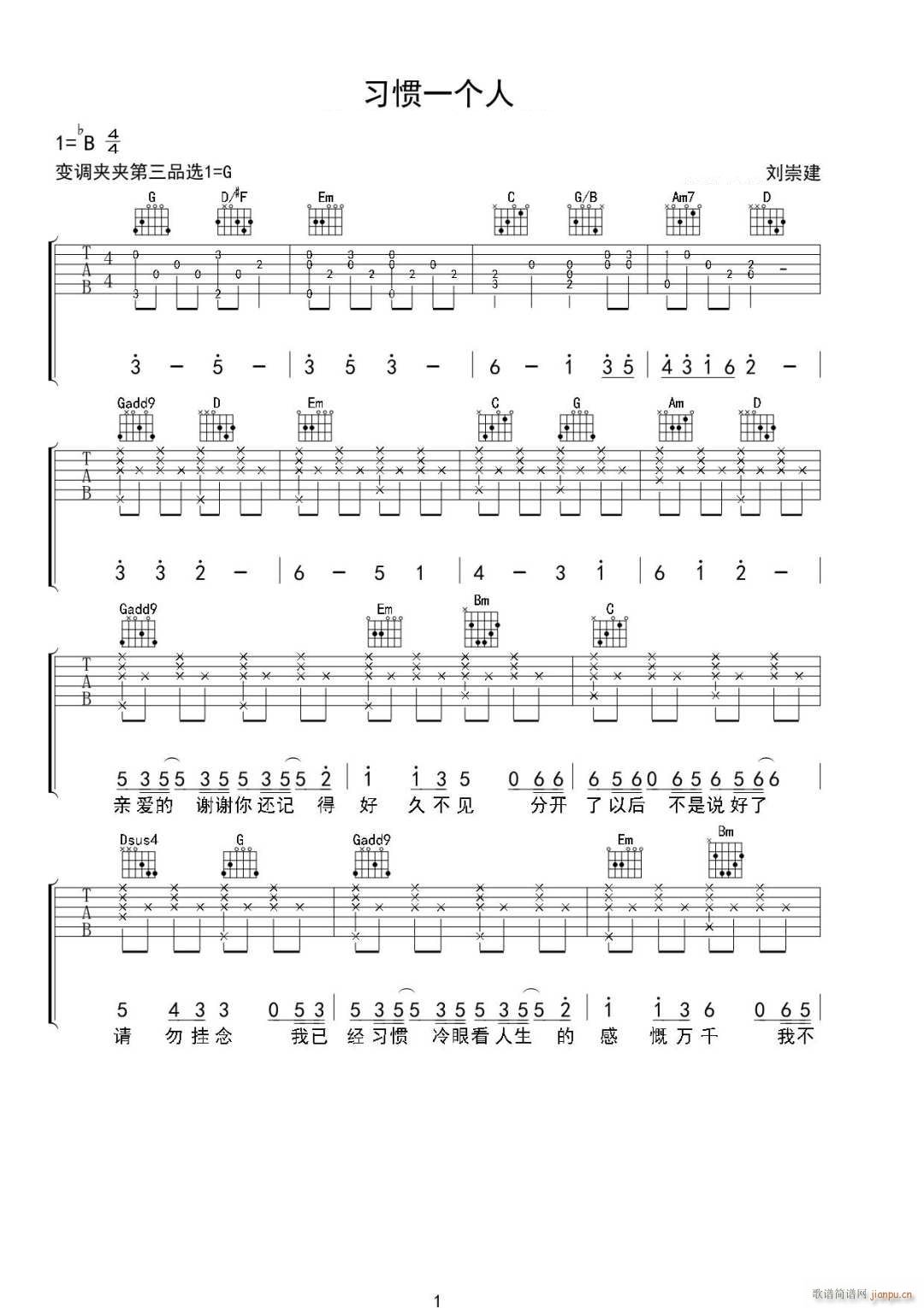 公众号:绵羊乐谱 习惯一个人 ( G调原版编配) 免费弹唱吉他谱_六线谱/词曲:刘崇建 点击: (网络) 公众号:绵羊乐谱 | 官方QQ群:978773290 不吃独食,学会分享!本文链接:http://www.shaomingyang.com/btb/34956.html 转载请标明出处,尊重原创(๑╹◡╹)ノ。如信息有误或版权疑问,请通过网站底部联系我们会第一时间处理,感谢理解支持(◕ᴗ◕✿)!