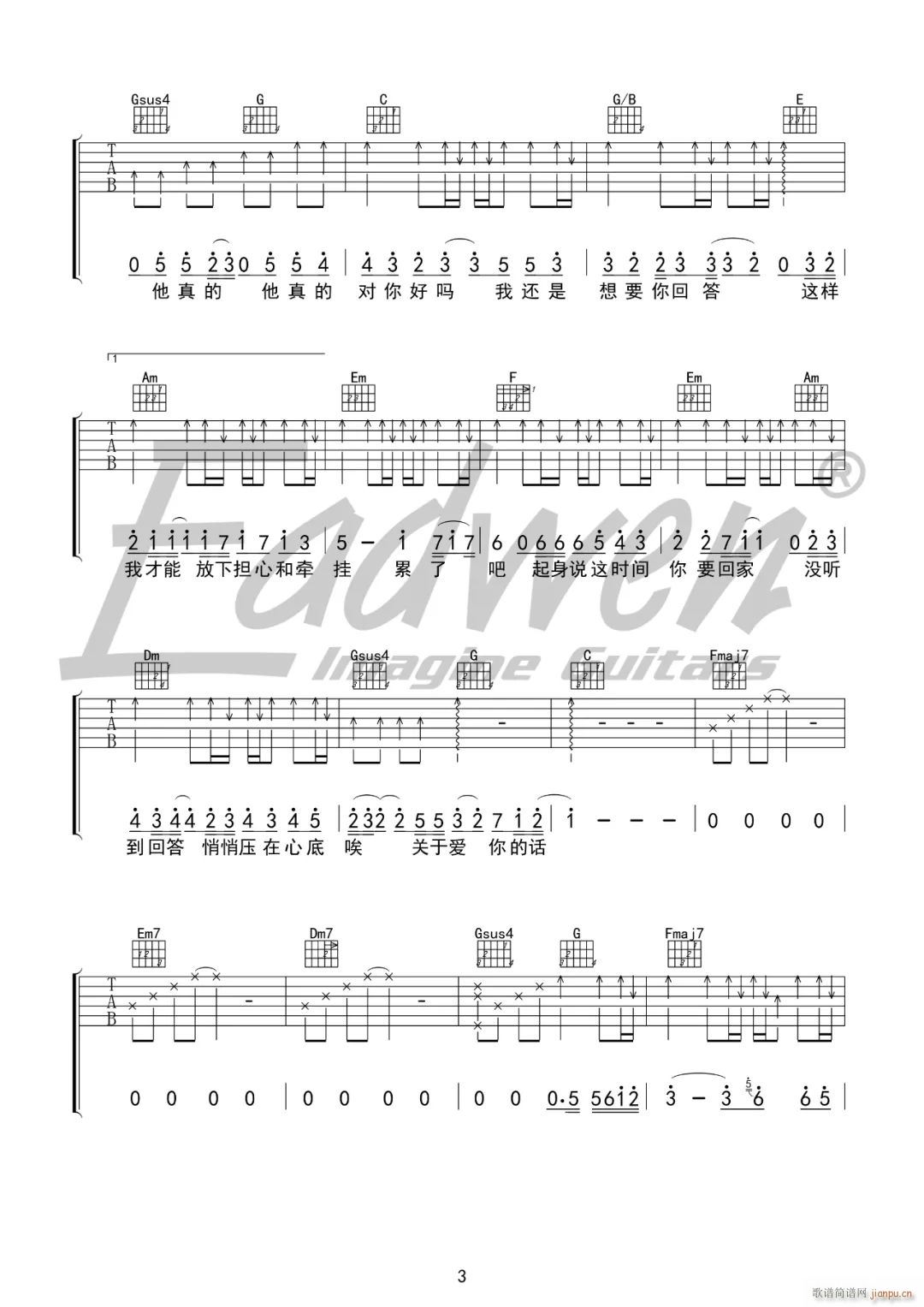 公众号:绵羊乐谱 他真的对你好吗 ( C调简单版) 免费弹唱吉他谱_六线谱/词曲:付豪 点击: (爱德文吉他教室) 公众号:绵羊乐谱 | 官方QQ群:978773290 不吃独食,学会分享!本文链接:http://www.shaomingyang.com/btb/34976.html 转载请标明出处,尊重原创(๑╹◡╹)ノ。如信息有误或版权疑问,请通过网站底部联系我们会第一时间处理,感谢理解支持(◕ᴗ◕✿)!