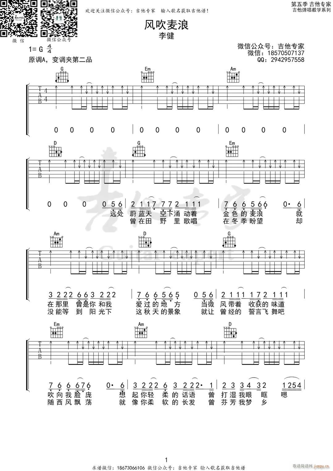 公众号:绵羊乐谱 风吹麦浪 ( G调扫弦版) 免费弹唱吉他谱_六线谱/词曲:李健 点击: (吉他专家) 公众号:绵羊乐谱 | 官方QQ群:978773290 不吃独食,学会分享!本文链接:http://www.shaomingyang.com/btb/34978.html 转载请标明出处,尊重原创(๑╹◡╹)ノ。如信息有误或版权疑问,请通过网站底部联系我们会第一时间处理,感谢理解支持(◕ᴗ◕✿)!