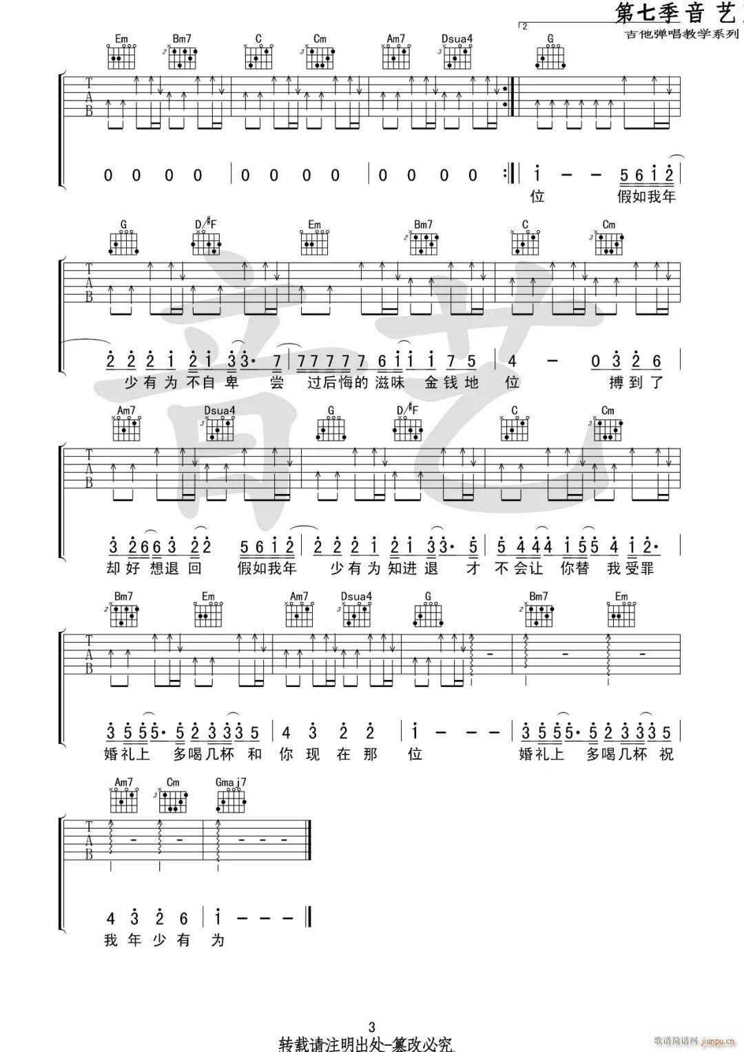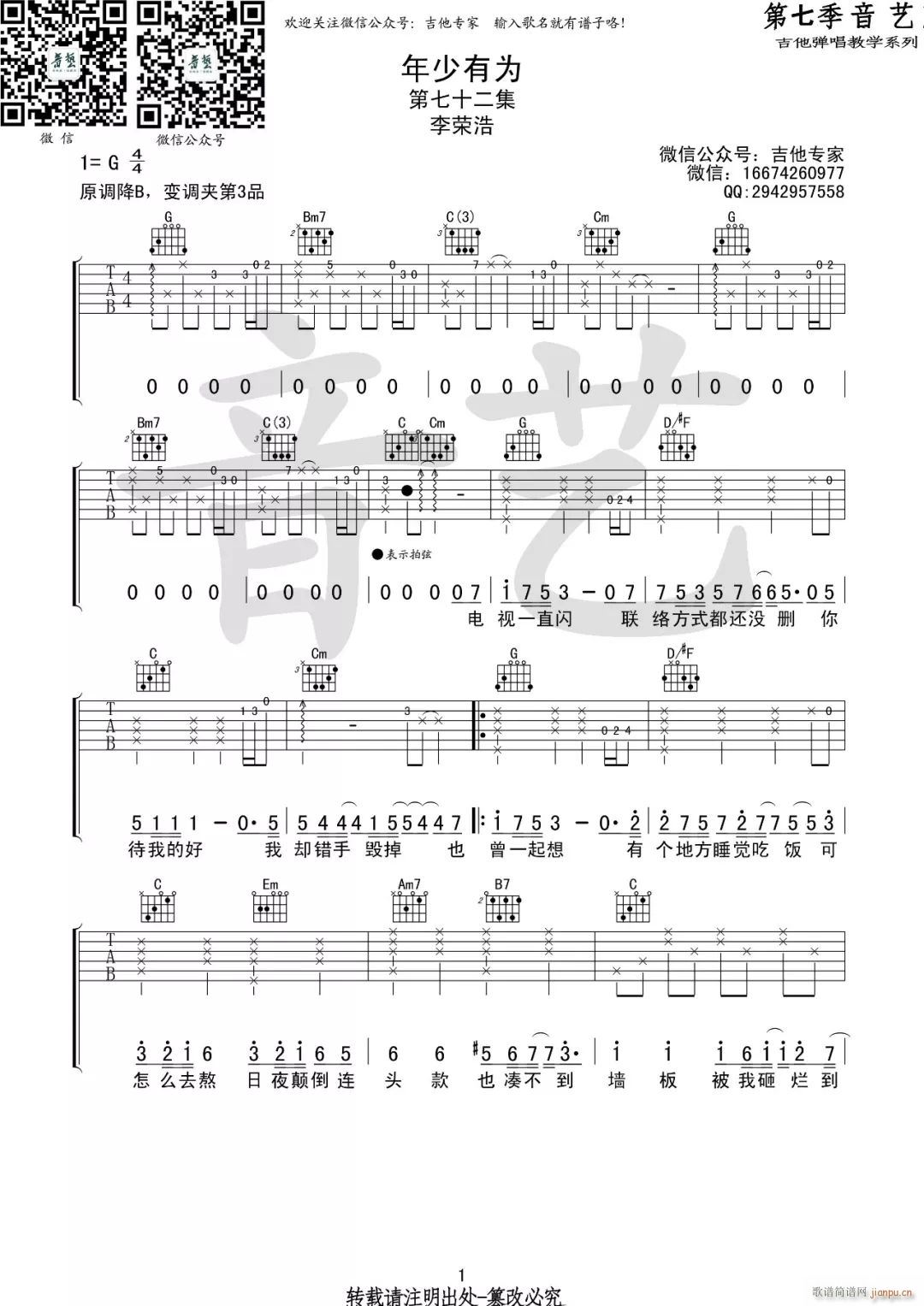 公众号:绵羊乐谱 年少有为 ( G调原版编配) 免费弹唱吉他谱_六线谱/词曲:李荣浩 点击: (吉他专家) 公众号:绵羊乐谱 | 官方QQ群:978773290 不吃独食,学会分享!本文链接:http://www.shaomingyang.com/btb/35028.html 转载请标明出处,尊重原创(๑╹◡╹)ノ。如信息有误或版权疑问,请通过网站底部联系我们会第一时间处理,感谢理解支持(◕ᴗ◕✿)!