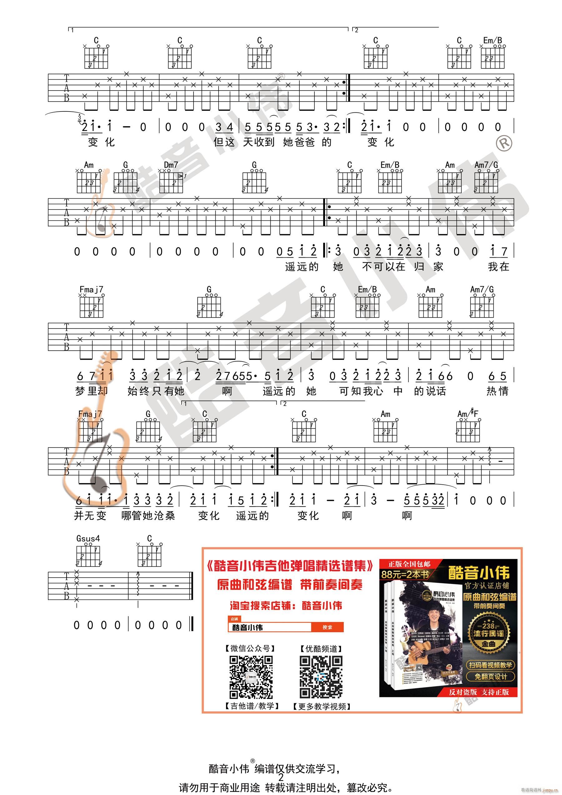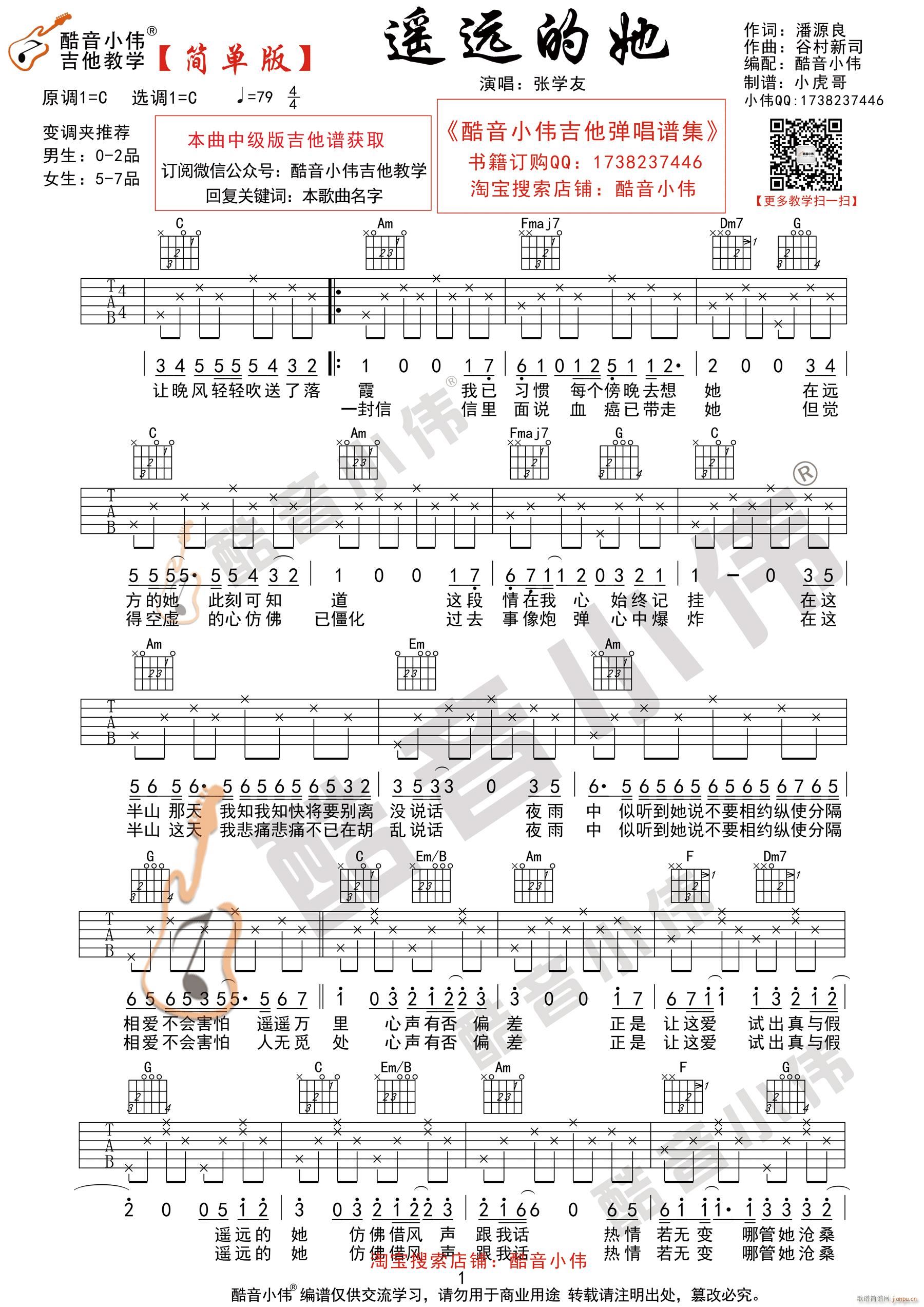 公众号:绵羊乐谱 《遥远的她》 简单版 吉他弹唱教学免费弹唱吉他谱_六线谱/词曲:张学友 点击: 1000 图片可能经过缩放,手机长按或点开后长按保存,电脑鼠标右键保存. (酷音小伟) 公众号:绵羊乐谱 | 官方QQ群:978773290 不吃独食,学会分享!本文链接:http://www.shaomingyang.com/btb/35034.html 转载请标明出处,尊重原创(๑╹◡╹)ノ。如信息有误或版权疑问,请通过网站底部联系我们会第一时间处理,感谢理解支持(◕ᴗ◕✿)!