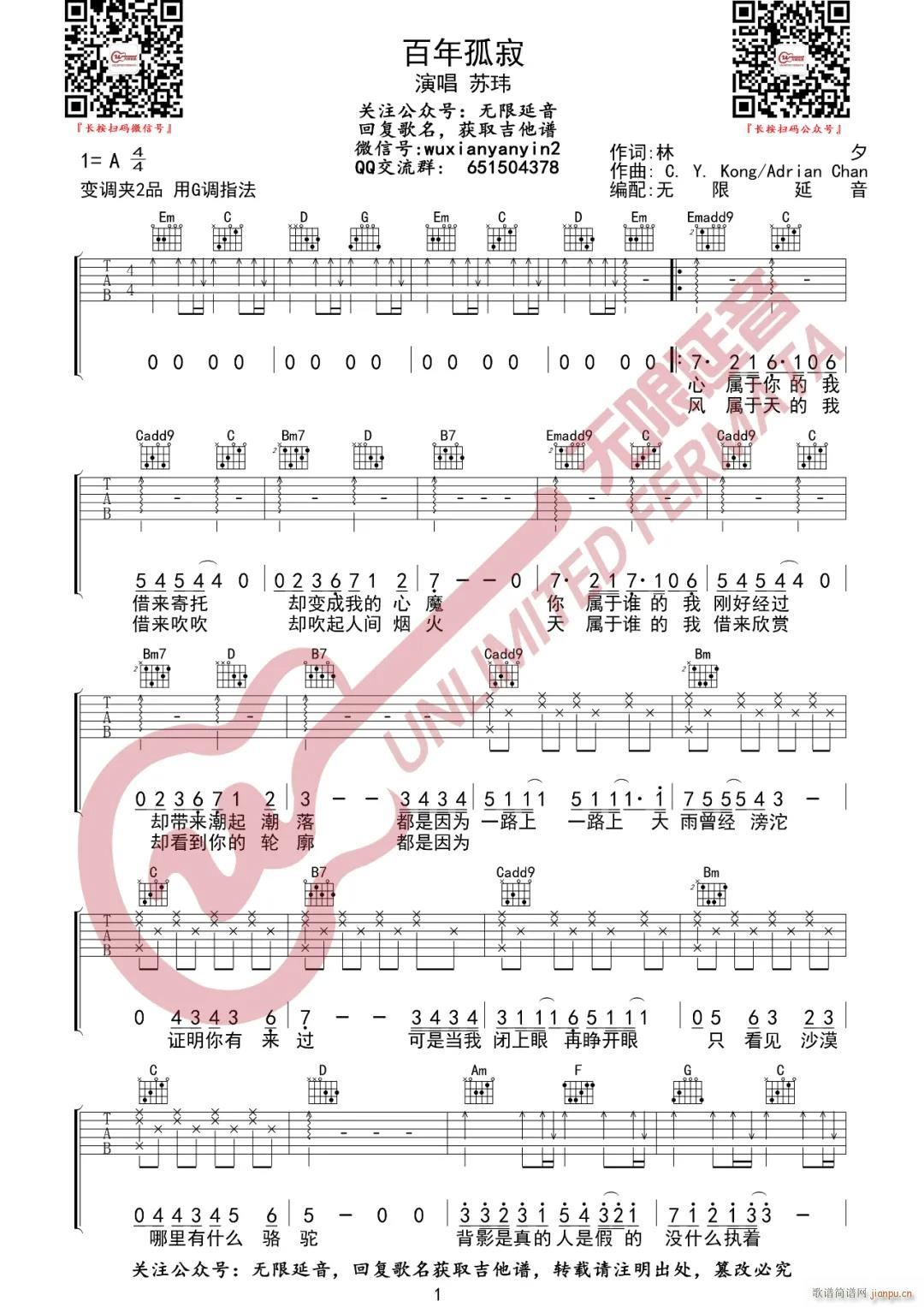 公众号:绵羊乐谱 百年孤寂 ( G调指法编配)免费弹唱吉他谱_六线谱/词曲:苏玮 点击: 1000 图片可能经过缩放,手机长按或点开后长按保存,电脑鼠标右键保存. (无限延音) 公众号:绵羊乐谱 | 官方QQ群:978773290 不吃独食,学会分享!本文链接:http://www.shaomingyang.com/btb/35041.html 转载请标明出处,尊重原创(๑╹◡╹)ノ。如信息有误或版权疑问,请通过网站底部联系我们会第一时间处理,感谢理解支持(◕ᴗ◕✿)!