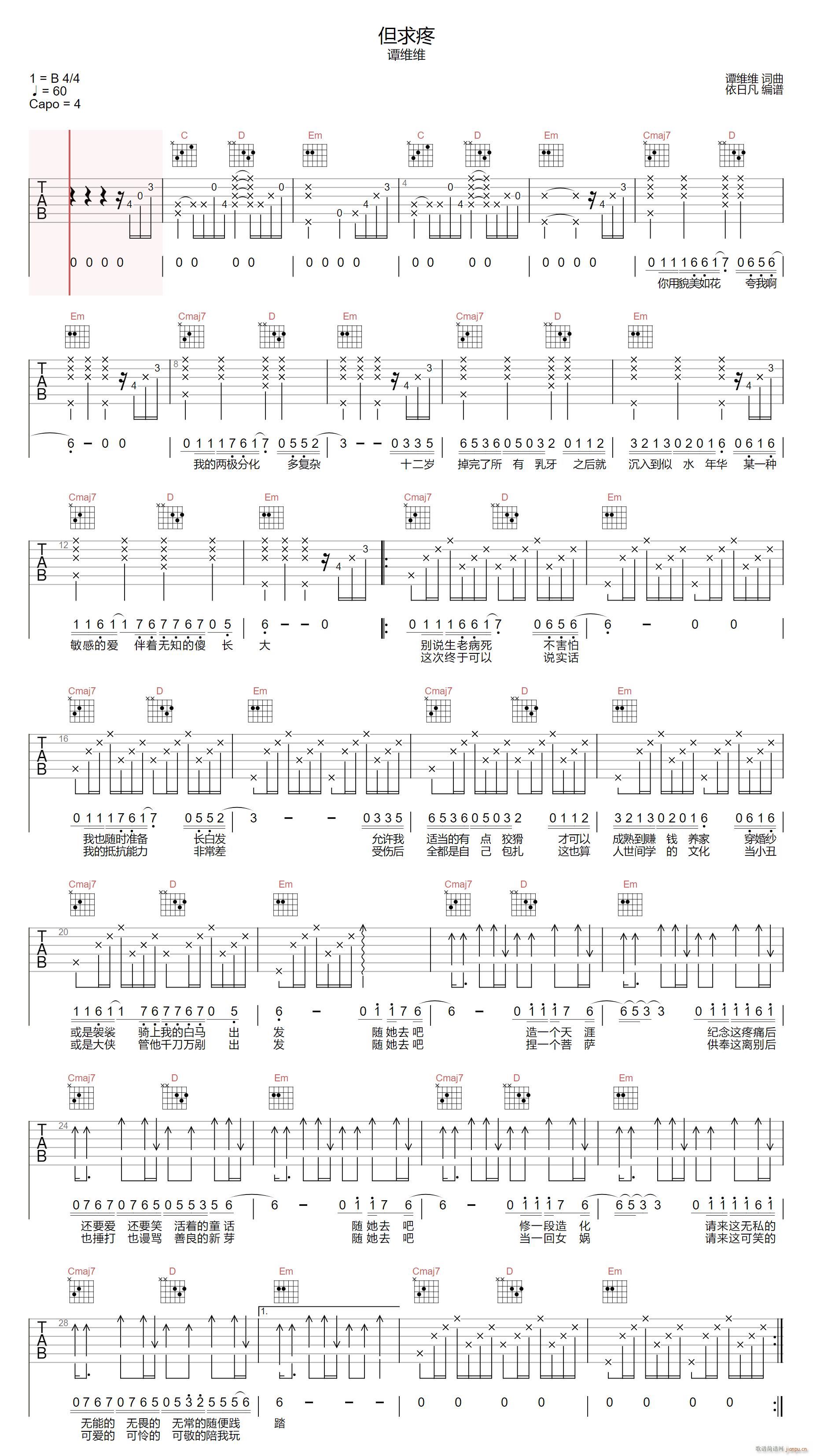公众号:绵羊乐谱 但求疼 ( G调原版编配) 免费弹唱吉他谱_六线谱/词曲:谭维维 点击: (依日凡) 公众号:绵羊乐谱 | 官方QQ群:978773290 不吃独食,学会分享!本文链接:http://www.shaomingyang.com/btb/35127.html 转载请标明出处,尊重原创(๑╹◡╹)ノ。如信息有误或版权疑问,请通过网站底部联系我们会第一时间处理,感谢理解支持(◕ᴗ◕✿)!