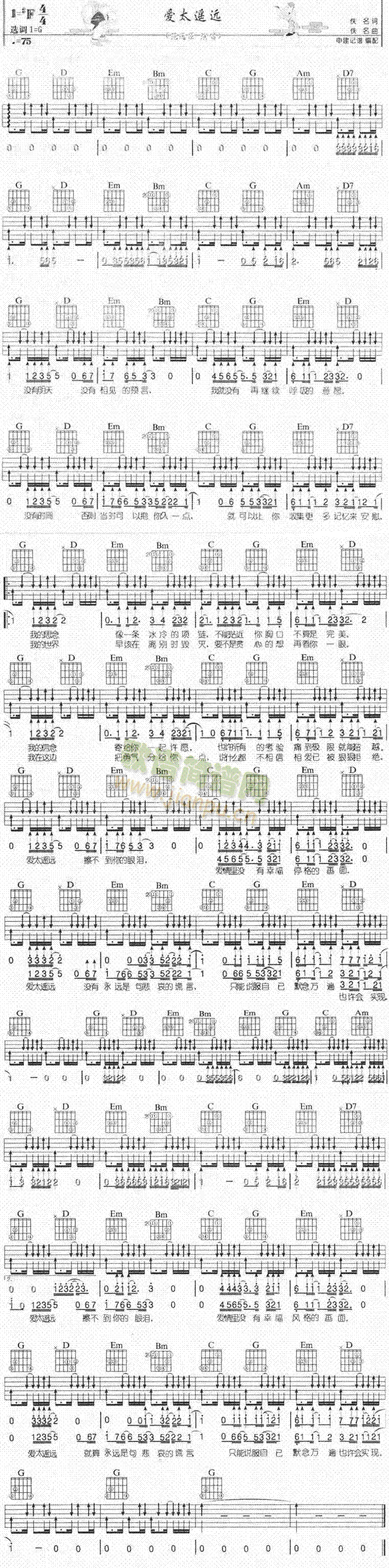 公众号:绵羊乐谱 爱太遥远免费弹唱吉他谱_六线谱:范逸臣 点击: 1000 图片可能经过缩放,手机长按或点开后长按保存,电脑鼠标右键保存. (网络) 公众号:绵羊乐谱 | 官方QQ群:978773290 不吃独食,学会分享!本文链接:http://www.shaomingyang.com/btb/35137.html 转载请标明出处,尊重原创(๑╹◡╹)ノ。如信息有误或版权疑问,请通过网站底部联系我们会第一时间处理,感谢理解支持(◕ᴗ◕✿)!