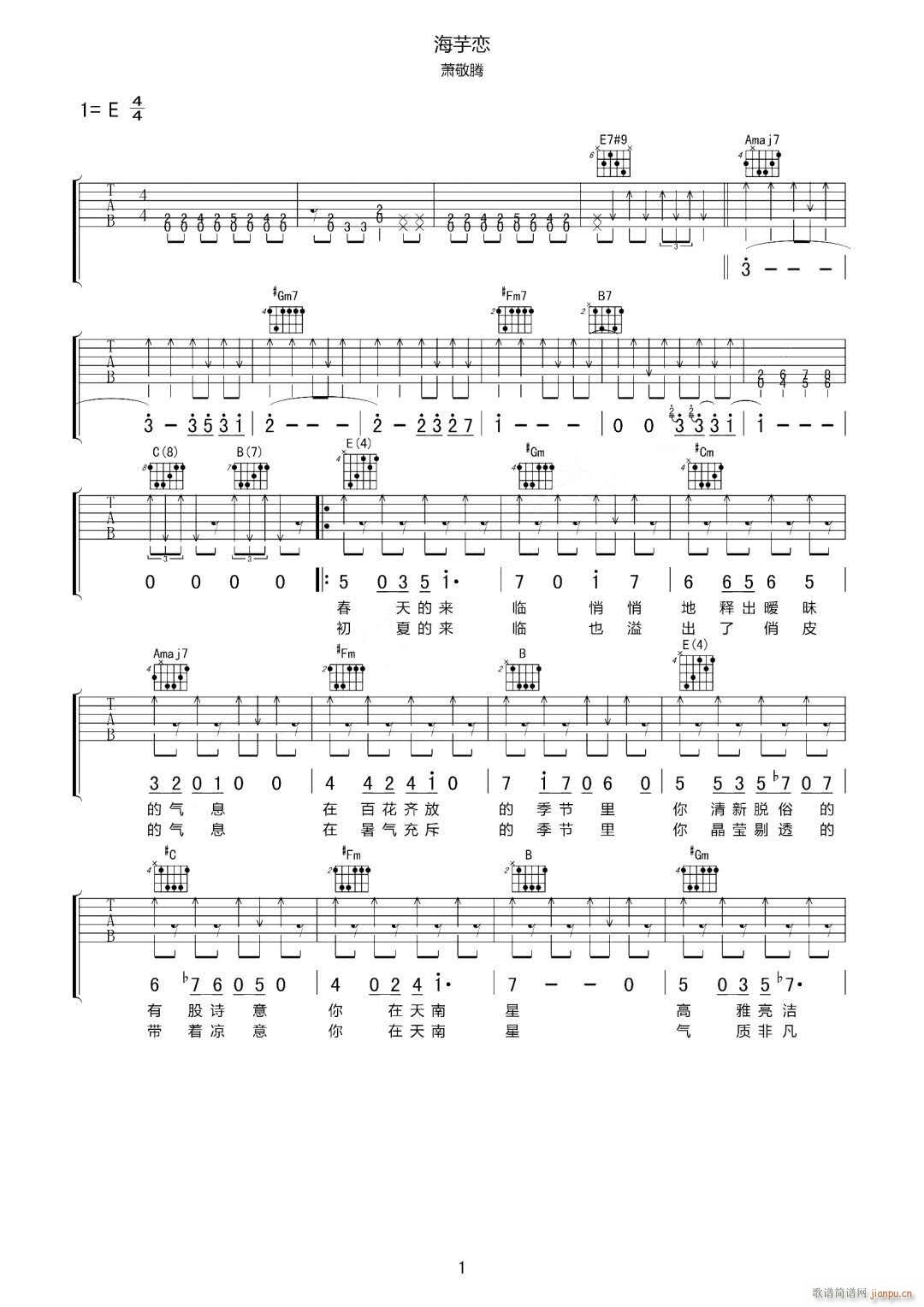 公众号:绵羊乐谱 海芋恋 ( E调指法原版编配) 免费弹唱吉他谱_六线谱/词曲:萧敬腾 点击: (网络) 公众号:绵羊乐谱 | 官方QQ群:978773290 不吃独食,学会分享!本文链接:http://www.shaomingyang.com/btb/35201.html 转载请标明出处,尊重原创(๑╹◡╹)ノ。如信息有误或版权疑问,请通过网站底部联系我们会第一时间处理,感谢理解支持(◕ᴗ◕✿)!