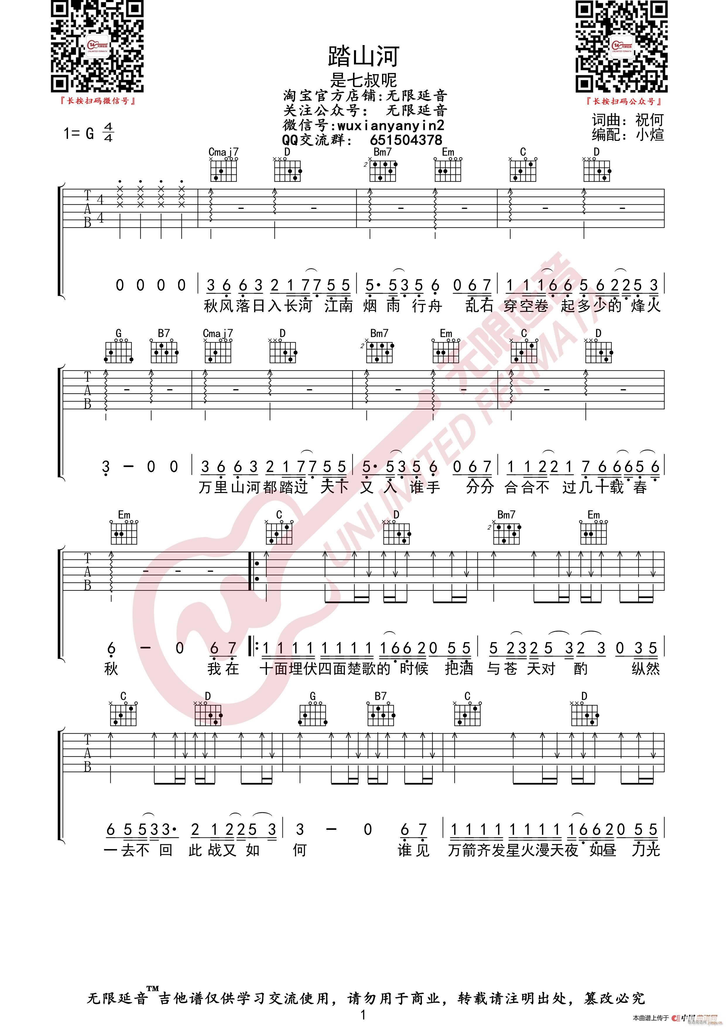 公众号:绵羊乐谱 是七叔呢 踏山河 (无限延音编配) 免费弹唱吉他谱_六线谱/词曲: 点击: (网络) 公众号:绵羊乐谱 | 官方QQ群:978773290 不吃独食,学会分享!本文链接:http://www.shaomingyang.com/btb/35224.html 转载请标明出处,尊重原创(๑╹◡╹)ノ。如信息有误或版权疑问,请通过网站底部联系我们会第一时间处理,感谢理解支持(◕ᴗ◕✿)!