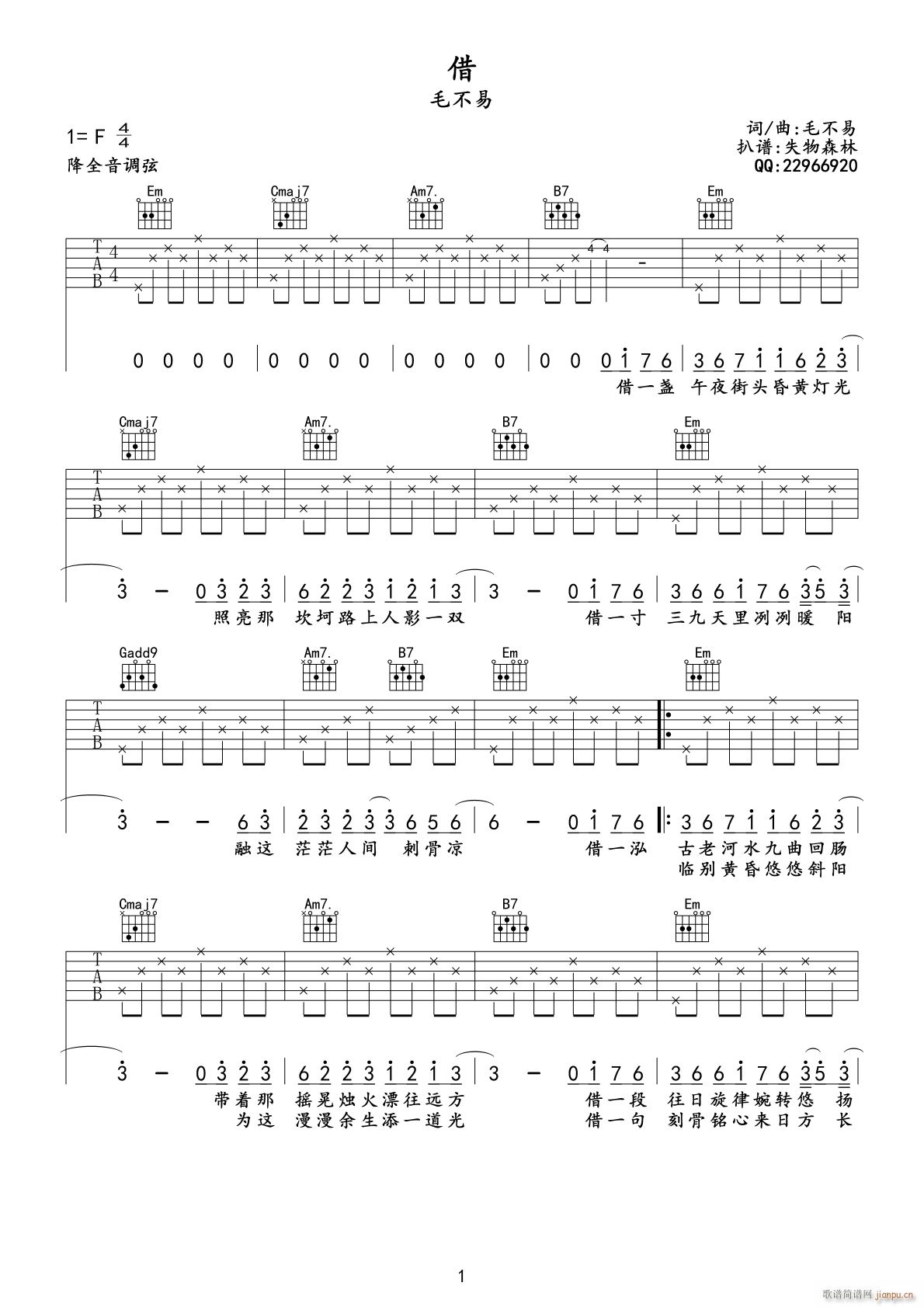 公众号:绵羊乐谱 借 ( G调指法简单版编配) 免费弹唱吉他谱_六线谱/词曲:毛不易 点击: (失物森林) 公众号:绵羊乐谱 | 官方QQ群:978773290 不吃独食,学会分享!本文链接:http://www.shaomingyang.com/btb/35227.html 转载请标明出处,尊重原创(๑╹◡╹)ノ。如信息有误或版权疑问,请通过网站底部联系我们会第一时间处理,感谢理解支持(◕ᴗ◕✿)!