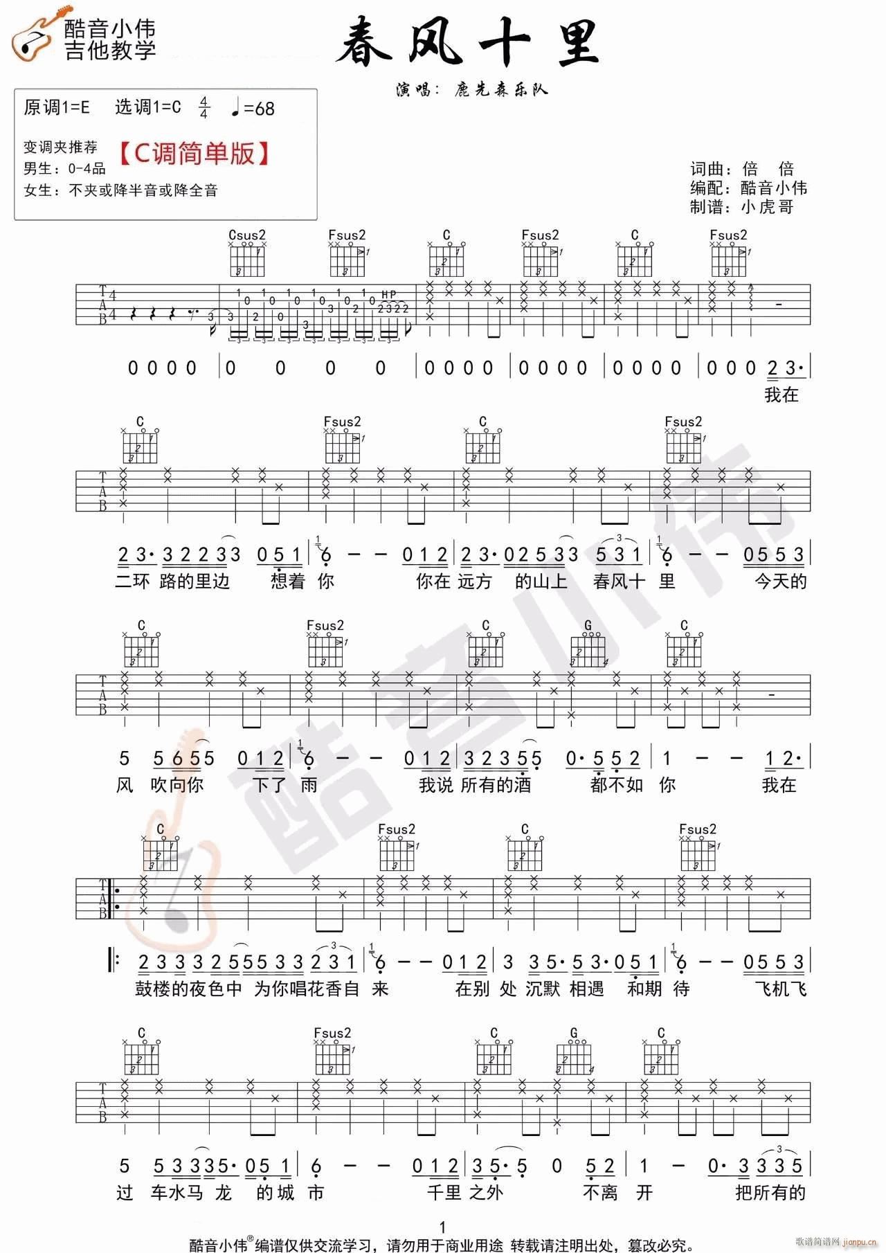 公众号:绵羊乐谱 春风十里 ( C调简单版编配) 免费弹唱吉他谱_六线谱/词曲:鹿先森乐队 点击: (酷音小伟) 公众号:绵羊乐谱 | 官方QQ群:978773290 不吃独食,学会分享!本文链接:http://www.shaomingyang.com/btb/35343.html 转载请标明出处,尊重原创(๑╹◡╹)ノ。如信息有误或版权疑问,请通过网站底部联系我们会第一时间处理,感谢理解支持(◕ᴗ◕✿)!