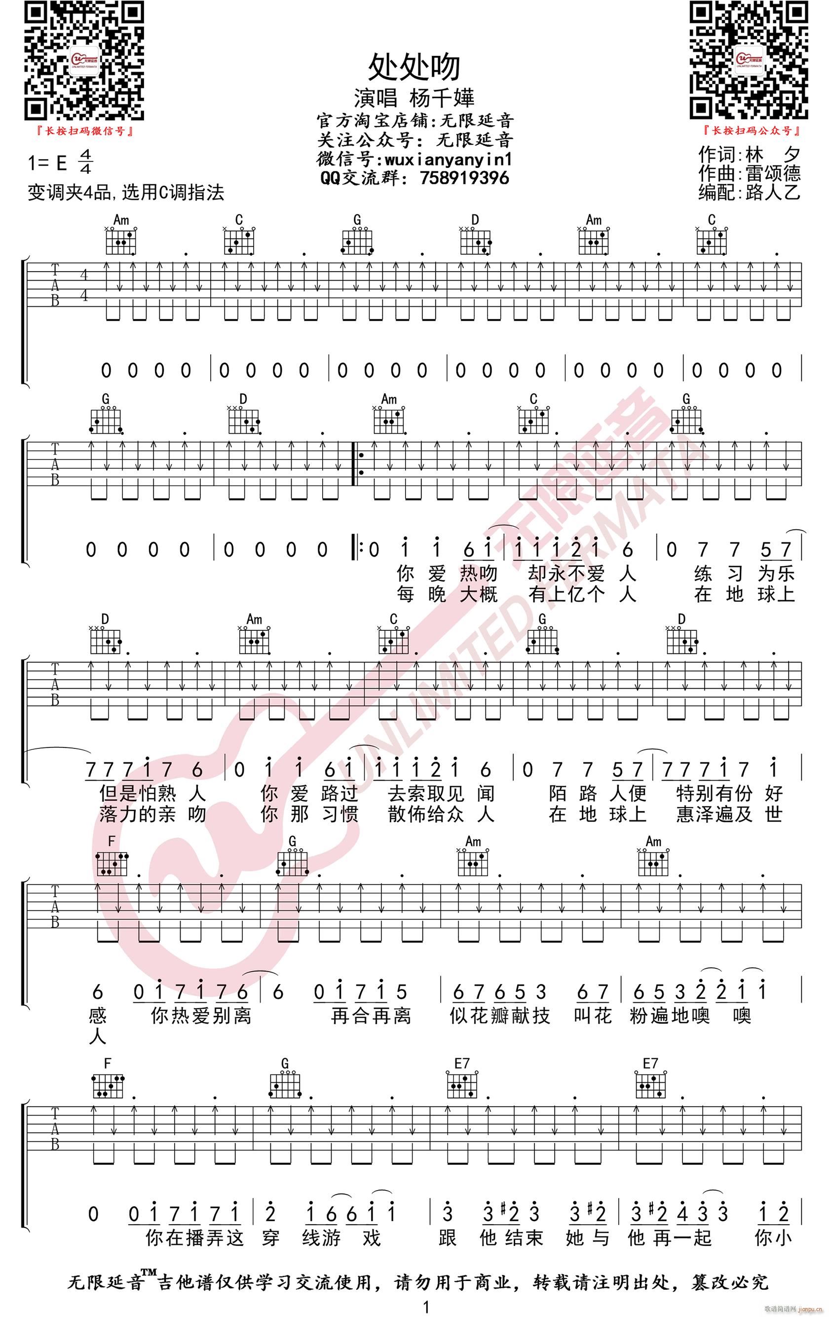公众号:绵羊乐谱 处处吻 ( C调切音扫弦版) 免费弹唱吉他谱_六线谱/词曲:杨千嬅 点击: (无限延音) 公众号:绵羊乐谱 | 官方QQ群:978773290 不吃独食,学会分享!本文链接:http://www.shaomingyang.com/btb/35356.html 转载请标明出处,尊重原创(๑╹◡╹)ノ。如信息有误或版权疑问,请通过网站底部联系我们会第一时间处理,感谢理解支持(◕ᴗ◕✿)!