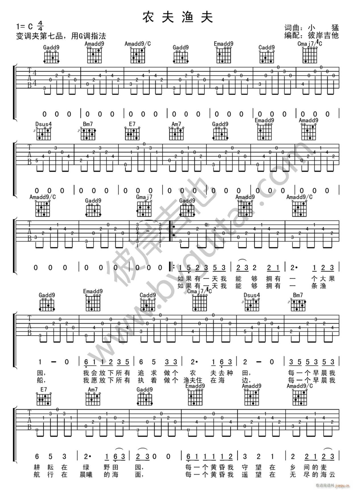 公众号:绵羊乐谱 农夫渔夫 ( G调原版编配) 免费弹唱吉他谱_六线谱/词曲:大乔小乔 点击: (彼岸吉他) 公众号:绵羊乐谱 | 官方QQ群:978773290 不吃独食,学会分享!本文链接:http://www.shaomingyang.com/btb/35358.html 转载请标明出处,尊重原创(๑╹◡╹)ノ。如信息有误或版权疑问,请通过网站底部联系我们会第一时间处理,感谢理解支持(◕ᴗ◕✿)!