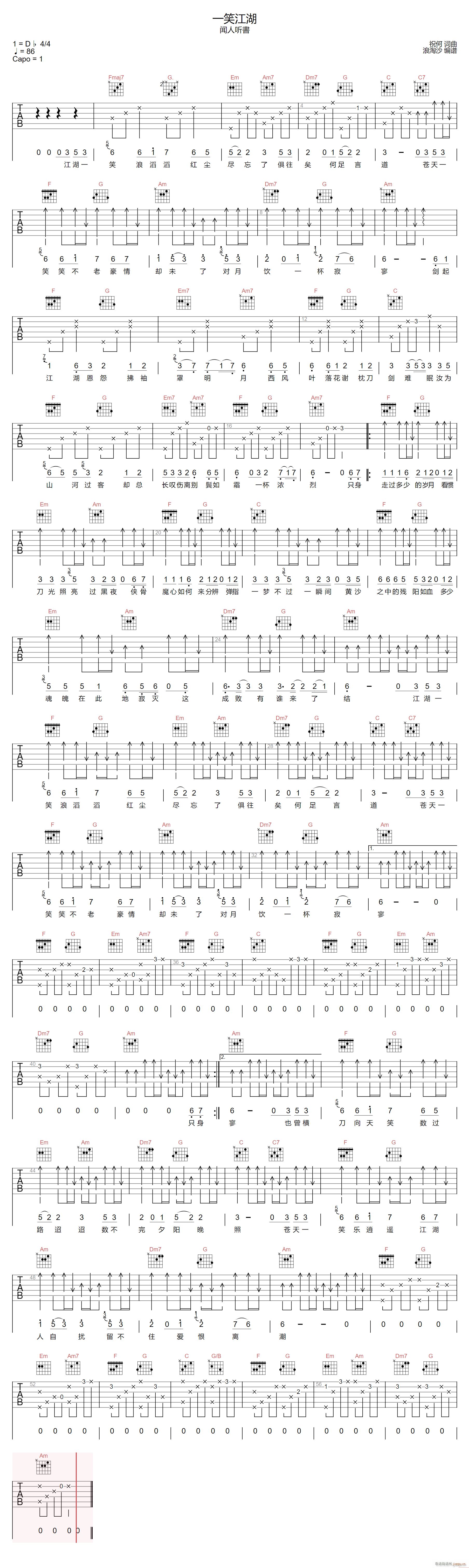 公众号:绵羊乐谱 一笑江湖 ( C调指法编配) 免费弹唱吉他谱_六线谱/词曲:闻人听书 点击: (浪淘沙) 公众号:绵羊乐谱 | 官方QQ群:978773290 不吃独食,学会分享!本文链接:http://www.shaomingyang.com/btb/35362.html 转载请标明出处,尊重原创(๑╹◡╹)ノ。如信息有误或版权疑问,请通过网站底部联系我们会第一时间处理,感谢理解支持(◕ᴗ◕✿)!