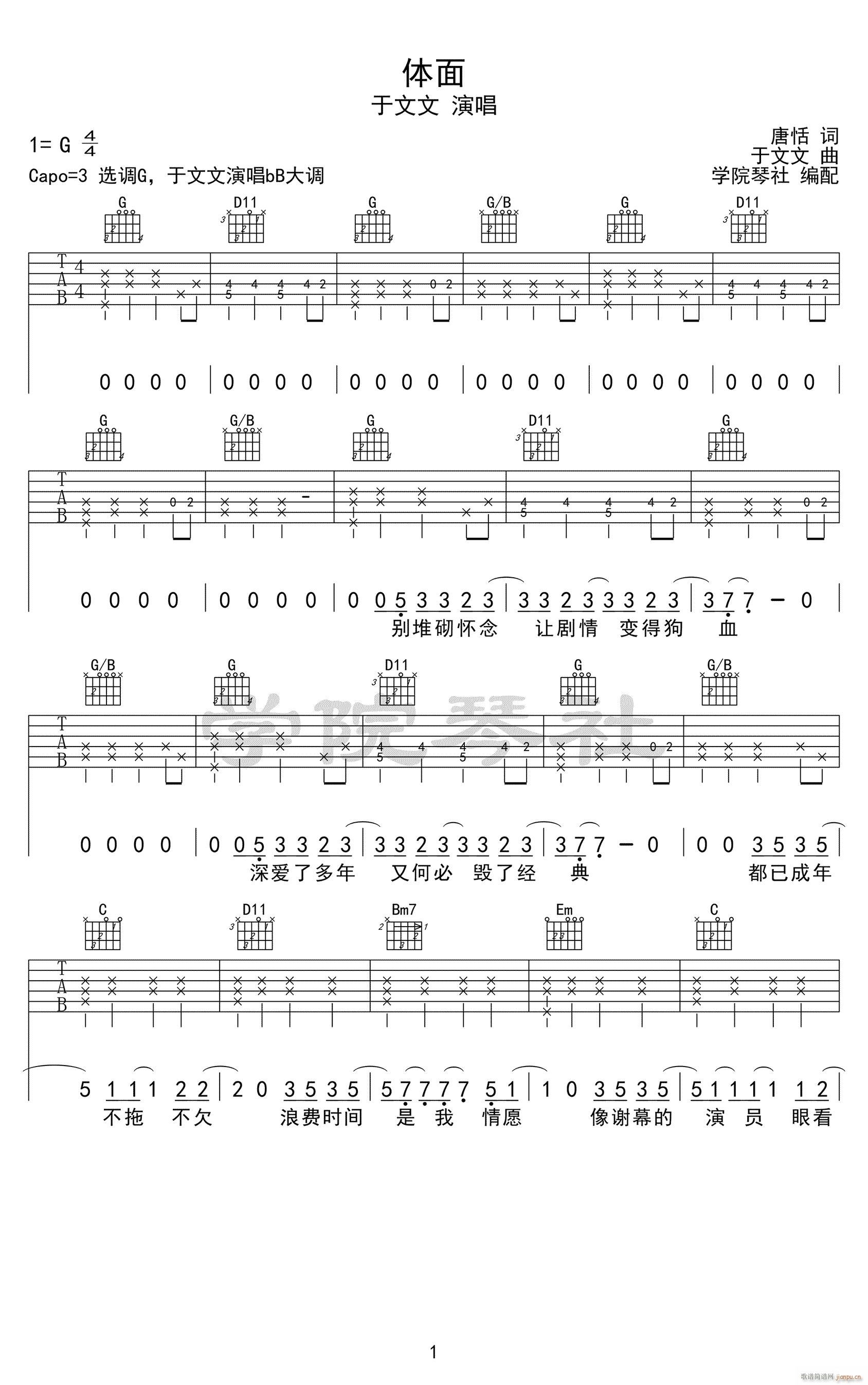 公众号:绵羊乐谱 体面 ( G调指法原版编配) 免费弹唱吉他谱_六线谱/词曲:于文文 点击: (学院琴社) 公众号:绵羊乐谱 | 官方QQ群:978773290 不吃独食,学会分享!本文链接:http://www.shaomingyang.com/btb/35366.html 转载请标明出处,尊重原创(๑╹◡╹)ノ。如信息有误或版权疑问,请通过网站底部联系我们会第一时间处理,感谢理解支持(◕ᴗ◕✿)!
