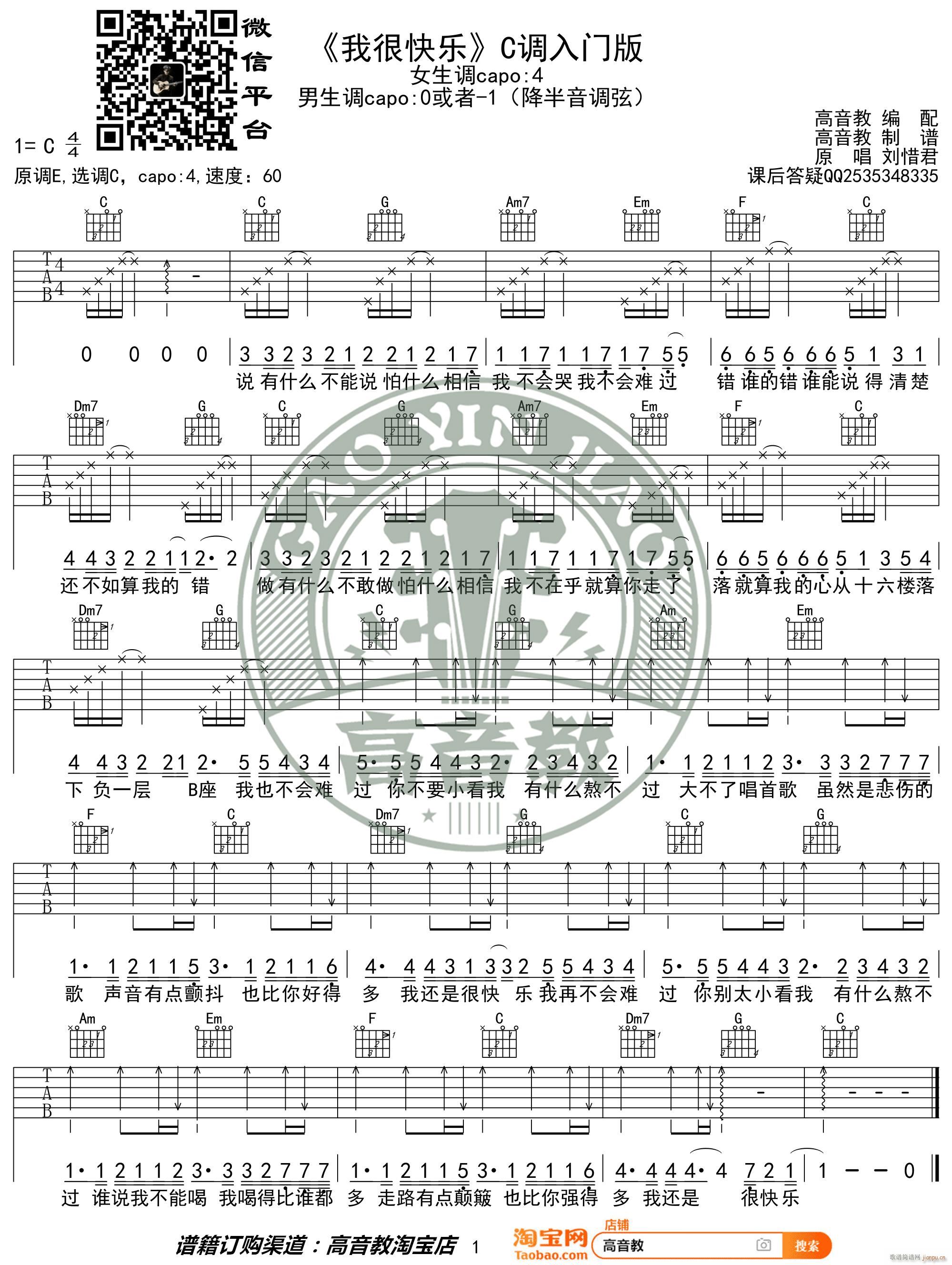 公众号:绵羊乐谱 我很快乐 ( C调指法简单版编配) 免费弹唱吉他谱_六线谱/词曲:刘惜君 点击: (高音教) 公众号:绵羊乐谱 | 官方QQ群:978773290 不吃独食,学会分享!本文链接:http://www.shaomingyang.com/btb/35377.html 转载请标明出处,尊重原创(๑╹◡╹)ノ。如信息有误或版权疑问,请通过网站底部联系我们会第一时间处理,感谢理解支持(◕ᴗ◕✿)!