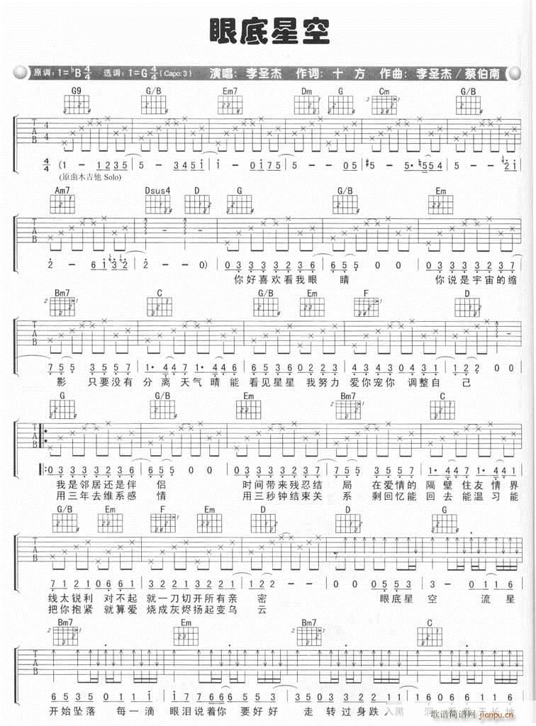 公众号:绵羊乐谱 眼底星空免费弹唱吉他谱_六线谱/词曲:李圣杰 点击: 1000 图片可能经过缩放,手机长按或点开后长按保存,电脑鼠标右键保存. (网络) 公众号:绵羊乐谱 | 官方QQ群:978773290 不吃独食,学会分享!本文链接:http://www.shaomingyang.com/btb/35378.html 转载请标明出处,尊重原创(๑╹◡╹)ノ。如信息有误或版权疑问,请通过网站底部联系我们会第一时间处理,感谢理解支持(◕ᴗ◕✿)!