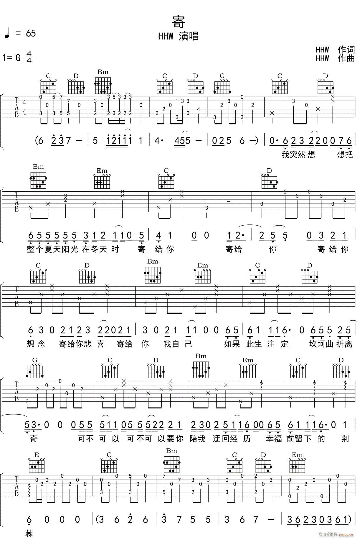 公众号:绵羊乐谱 寄 ( G调指法原版编配) 免费弹唱吉他谱_六线谱/词曲:HHW 点击: (网络) 公众号:绵羊乐谱 | 官方QQ群:978773290 不吃独食,学会分享!本文链接:http://www.shaomingyang.com/btb/35428.html 转载请标明出处,尊重原创(๑╹◡╹)ノ。如信息有误或版权疑问,请通过网站底部联系我们会第一时间处理,感谢理解支持(◕ᴗ◕✿)!