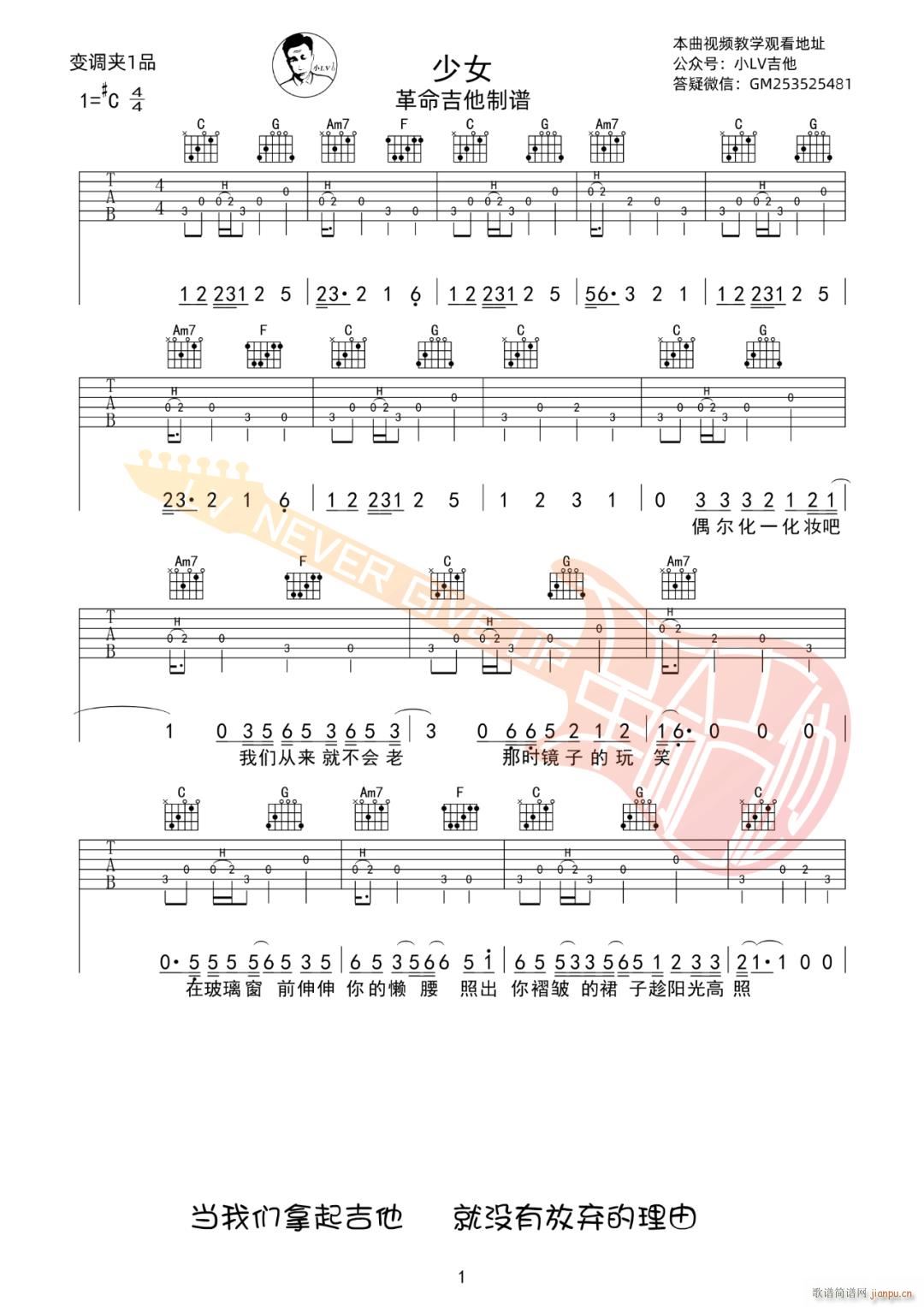 公众号:绵羊乐谱 少女 ( 新歌 C调原版 ) 免费弹唱吉他谱_六线谱/词曲:赵雷 点击: (革命吉他) 公众号:绵羊乐谱 | 官方QQ群:978773290 不吃独食,学会分享!本文链接:http://www.shaomingyang.com/btb/35444.html 转载请标明出处,尊重原创(๑╹◡╹)ノ。如信息有误或版权疑问,请通过网站底部联系我们会第一时间处理,感谢理解支持(◕ᴗ◕✿)!