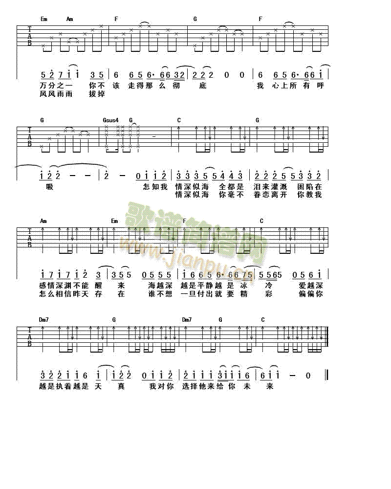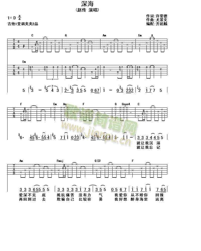 公众号:绵羊乐谱 深海免费弹唱吉他谱_六线谱:赵传 点击: 1000 图片可能经过缩放,手机长按或点开后长按保存,电脑鼠标右键保存. (乐友joiln传谱) 公众号:绵羊乐谱 | 官方QQ群:978773290 不吃独食,学会分享!本文链接:http://www.shaomingyang.com/btb/35467.html 转载请标明出处,尊重原创(๑╹◡╹)ノ。如信息有误或版权疑问,请通过网站底部联系我们会第一时间处理,感谢理解支持(◕ᴗ◕✿)!