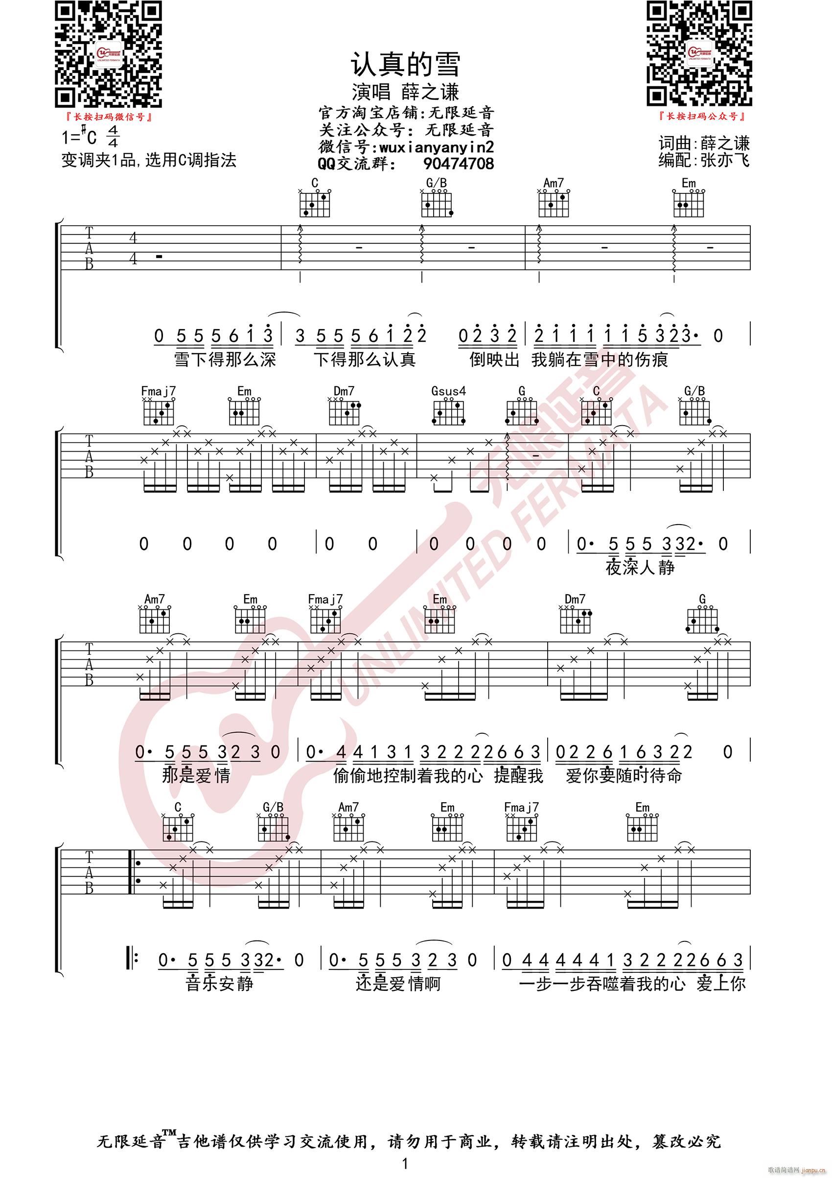 公众号:绵羊乐谱 认真的雪 ( C调原版编配) 免费弹唱吉他谱_六线谱/词曲:薛之谦 点击: (无限延音) 公众号:绵羊乐谱 | 官方QQ群:978773290 不吃独食,学会分享!本文链接:http://www.shaomingyang.com/btb/35524.html 转载请标明出处,尊重原创(๑╹◡╹)ノ。如信息有误或版权疑问,请通过网站底部联系我们会第一时间处理,感谢理解支持(◕ᴗ◕✿)!
