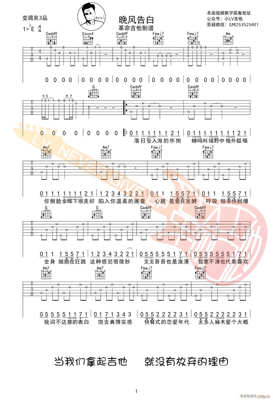 公众号:绵羊乐谱 晚风告白 ( C调指法原版编配) 免费弹唱吉他谱_六线谱/词曲:星野 点击: (革命吉他) 公众号:绵羊乐谱 | 官方QQ群:978773290 不吃独食,学会分享!本文链接:http://www.shaomingyang.com/btb/35526.html 转载请标明出处,尊重原创(๑╹◡╹)ノ。如信息有误或版权疑问,请通过网站底部联系我们会第一时间处理,感谢理解支持(◕ᴗ◕✿)!