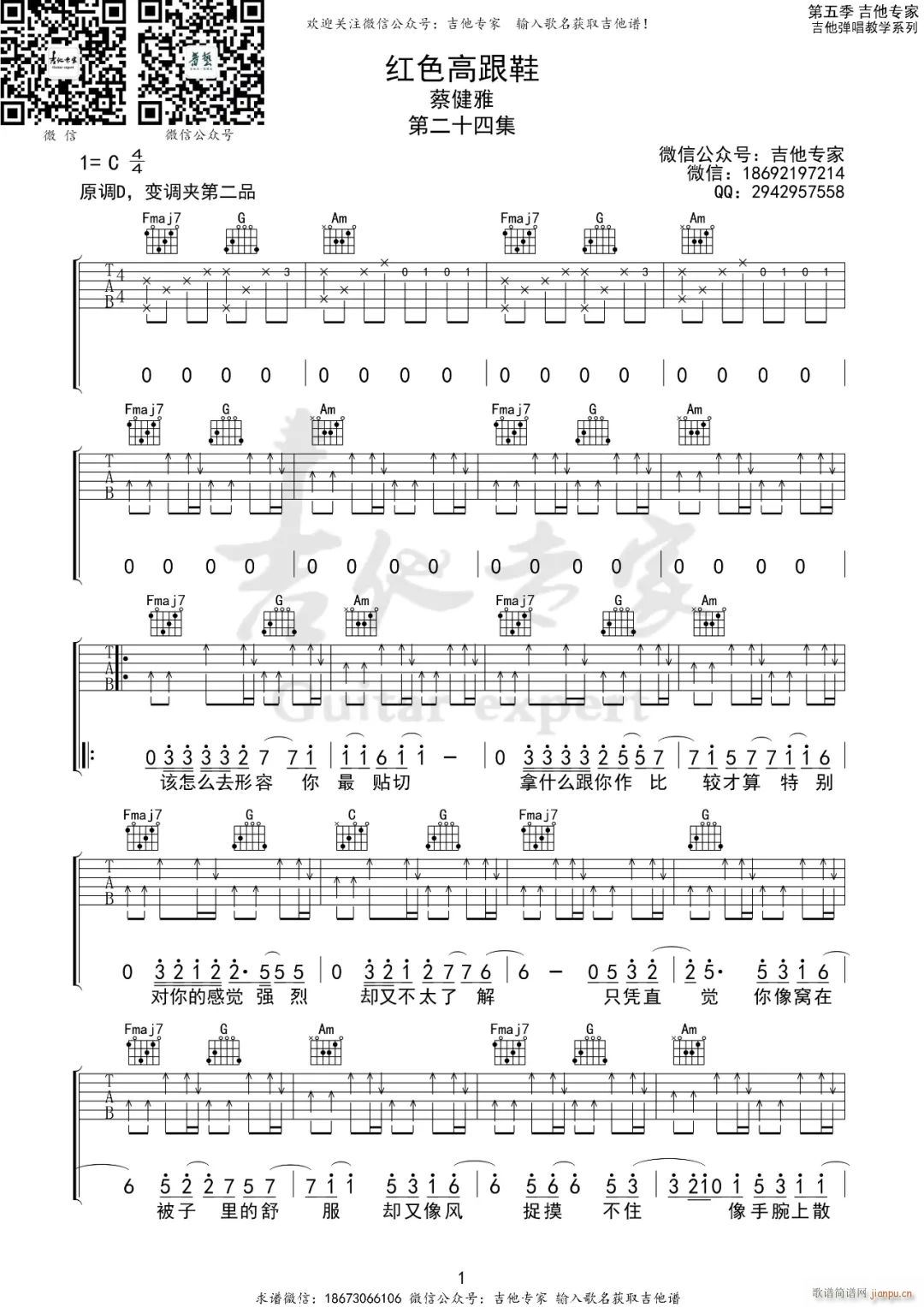 公众号:绵羊乐谱 红色高跟鞋 ( C调指法编配) 免费弹唱吉他谱_六线谱/词曲:蔡健雅 点击: (吉他专家) 公众号:绵羊乐谱 | 官方QQ群:978773290 不吃独食,学会分享!本文链接:http://www.shaomingyang.com/btb/35530.html 转载请标明出处,尊重原创(๑╹◡╹)ノ。如信息有误或版权疑问,请通过网站底部联系我们会第一时间处理,感谢理解支持(◕ᴗ◕✿)!