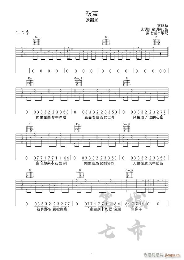 公众号:绵羊乐谱 破茧 ( C调指法编配) 免费弹唱吉他谱_六线谱/词曲:张韶涵 点击: (第七城市) 公众号:绵羊乐谱 | 官方QQ群:978773290 不吃独食,学会分享!本文链接:http://www.shaomingyang.com/btb/35575.html 转载请标明出处,尊重原创(๑╹◡╹)ノ。如信息有误或版权疑问,请通过网站底部联系我们会第一时间处理,感谢理解支持(◕ᴗ◕✿)!