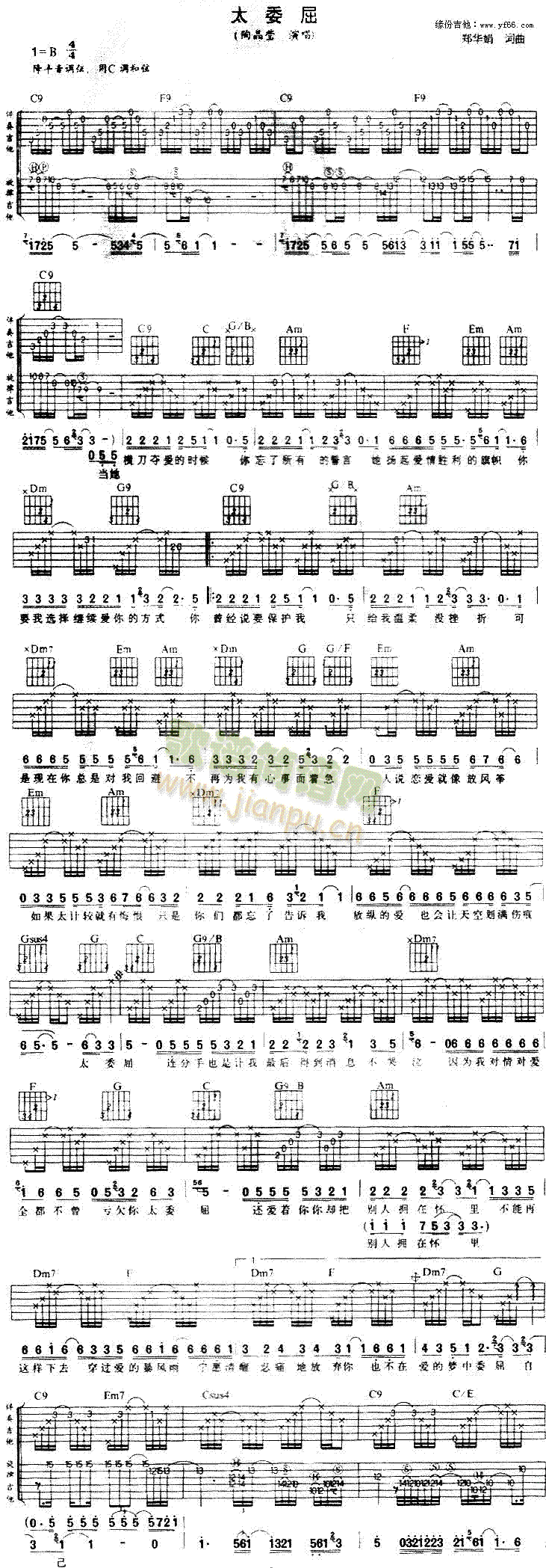 公众号:绵羊乐谱 太委屈免费弹唱吉他谱_六线谱:陶晶莹 点击: 1000 图片可能经过缩放,另存可看到原图,在图片上点鼠标右键,选图片另存为,可以保存到你的电脑中. (网络) 公众号:绵羊乐谱 | 官方QQ群:978773290 不吃独食,学会分享!本文链接:http://www.shaomingyang.com/btb/35580.html 转载请标明出处,尊重原创(๑╹◡╹)ノ。如信息有误或版权疑问,请通过网站底部联系我们会第一时间处理,感谢理解支持(◕ᴗ◕✿)!