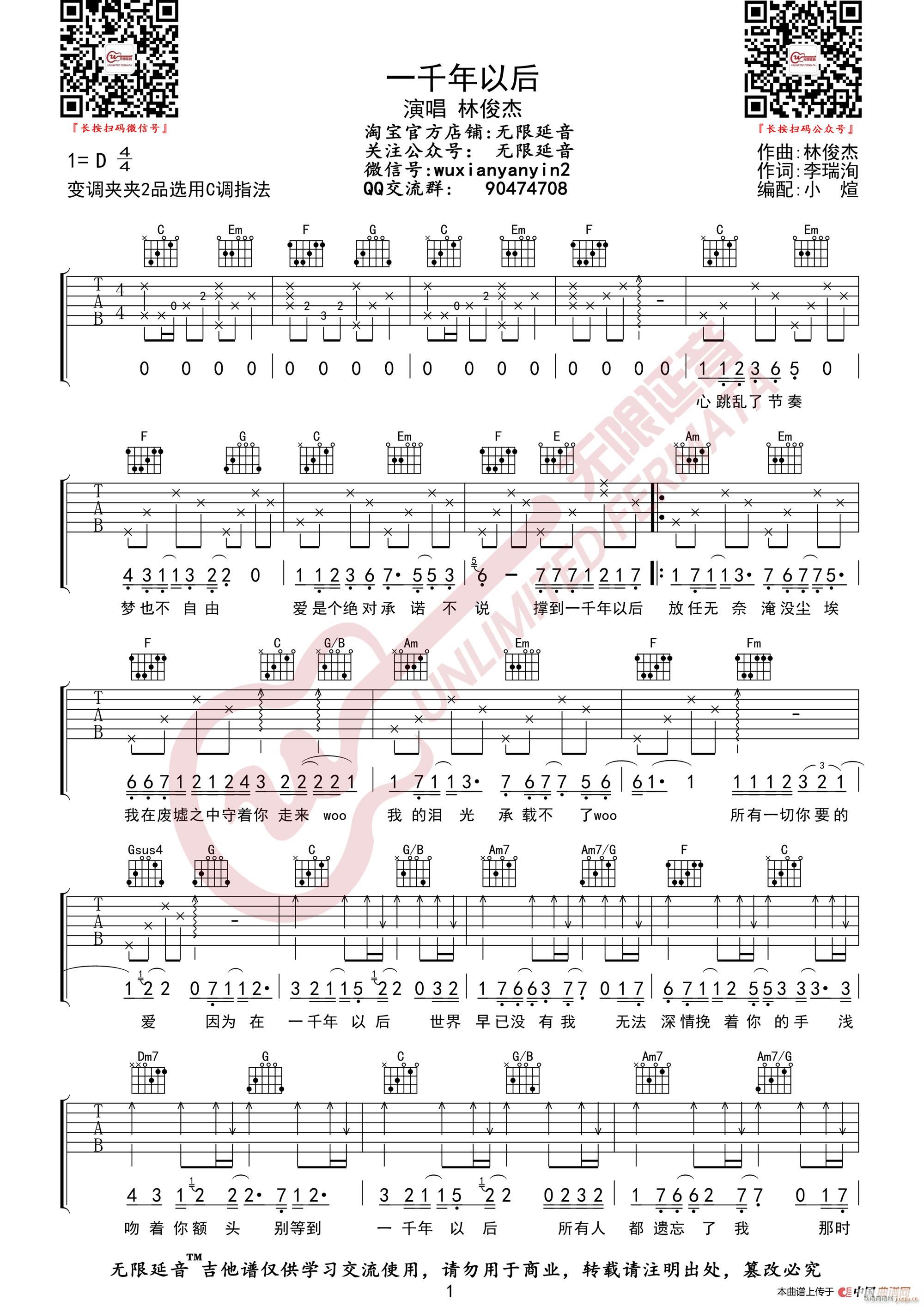 公众号:绵羊乐谱 林俊杰 一千年以后 (无限延音编配) 免费弹唱吉他谱_六线谱/词曲: 点击: (网络) 公众号:绵羊乐谱 | 官方QQ群:978773290 不吃独食,学会分享!本文链接:http://www.shaomingyang.com/btb/35587.html 转载请标明出处,尊重原创(๑╹◡╹)ノ。如信息有误或版权疑问,请通过网站底部联系我们会第一时间处理,感谢理解支持(◕ᴗ◕✿)!