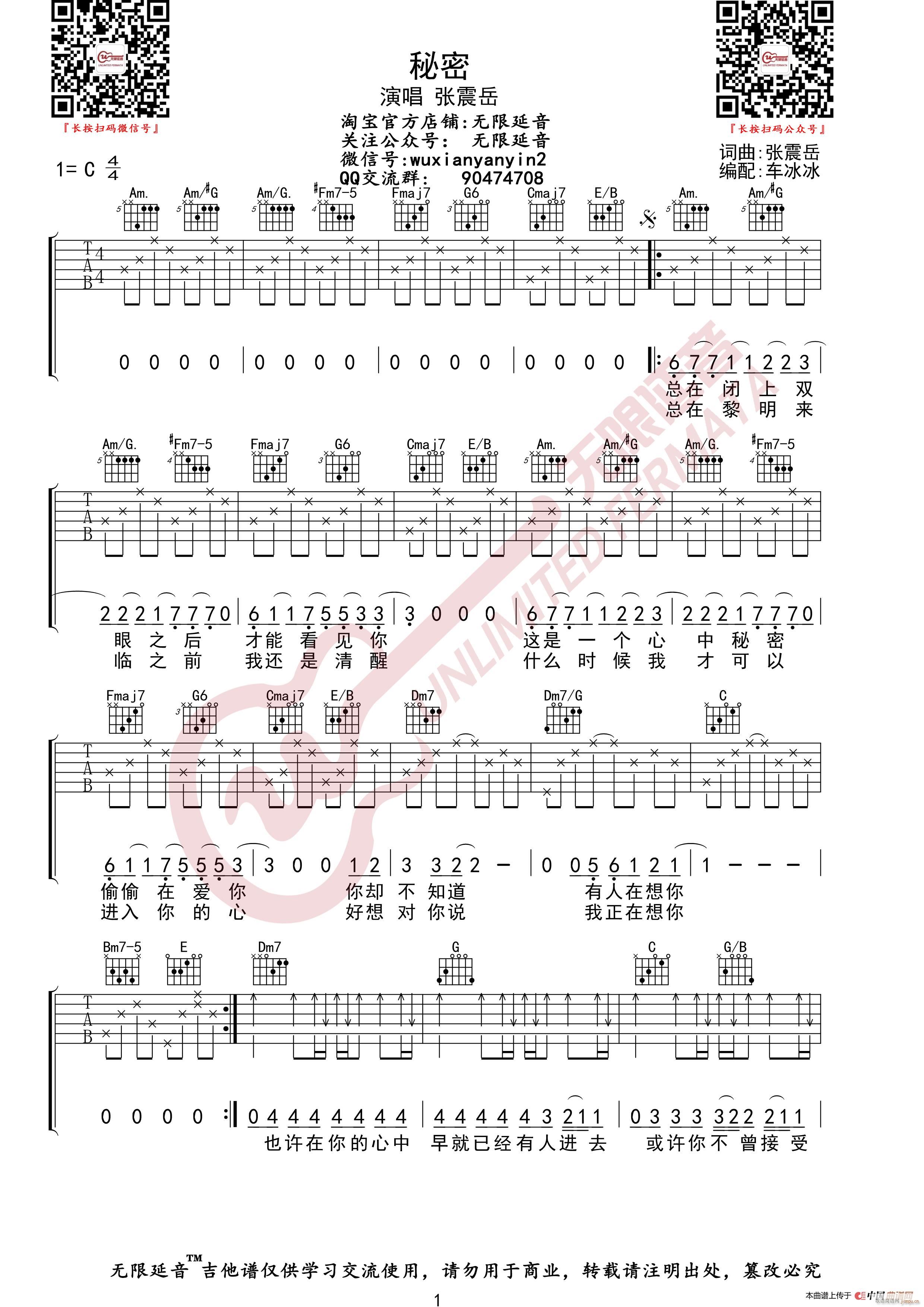 公众号:绵羊乐谱 张震岳 秘密 (无限延音编配) 免费弹唱吉他谱_六线谱/词曲: 点击: (网络) 公众号:绵羊乐谱 | 官方QQ群:978773290 不吃独食,学会分享!本文链接:http://www.shaomingyang.com/btb/35602.html 转载请标明出处,尊重原创(๑╹◡╹)ノ。如信息有误或版权疑问,请通过网站底部联系我们会第一时间处理,感谢理解支持(◕ᴗ◕✿)!
