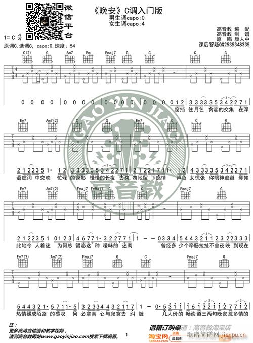 公众号:绵羊乐谱 颜人中《晚安》 C调入门版 编配 猴哥吉他教学免费弹唱吉他谱_六线谱/词曲: 点击: 1000 图片可能经过缩放,手机长按或点开后长按保存,电脑鼠标右键保存. (高音教) 公众号:绵羊乐谱 | 官方QQ群:978773290 不吃独食,学会分享!本文链接:http://www.shaomingyang.com/btb/35610.html 转载请标明出处,尊重原创(๑╹◡╹)ノ。如信息有误或版权疑问,请通过网站底部联系我们会第一时间处理,感谢理解支持(◕ᴗ◕✿)!
